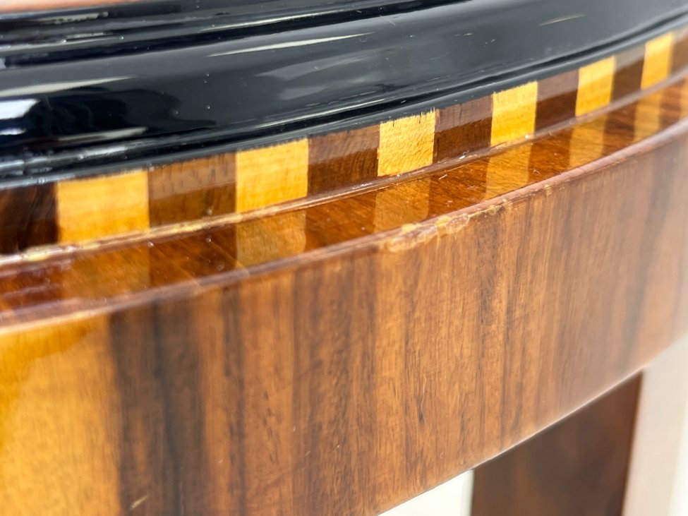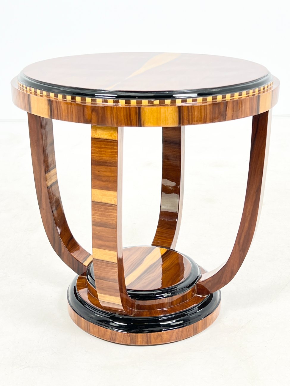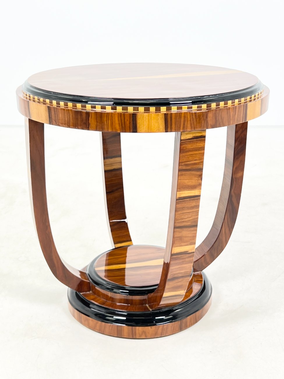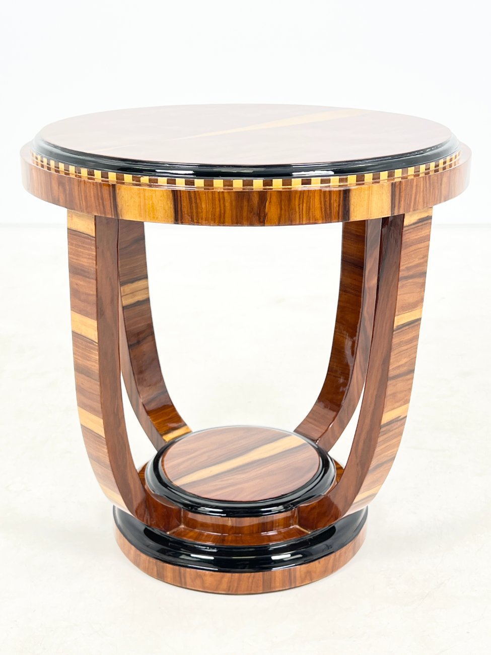 Art Deco stiliaus apvalus riešutmedžio lukšto staliukas 60x60x59 cm