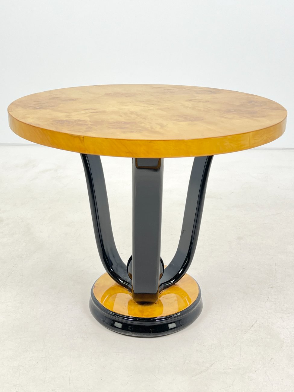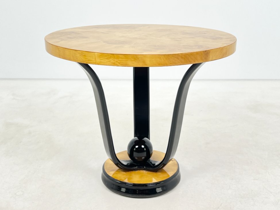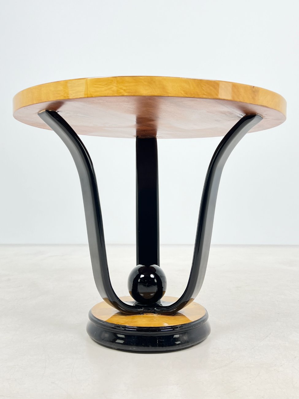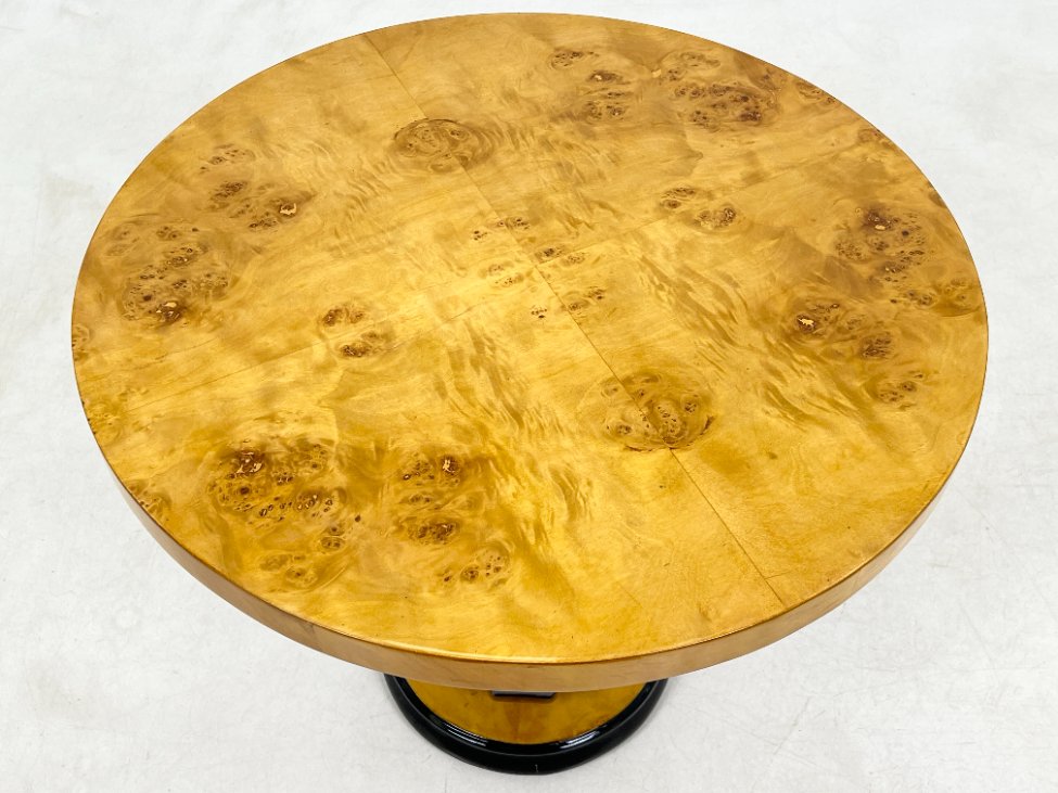 Art Deco stiliaus apvalus riešutmedžio lukšto staliukas
