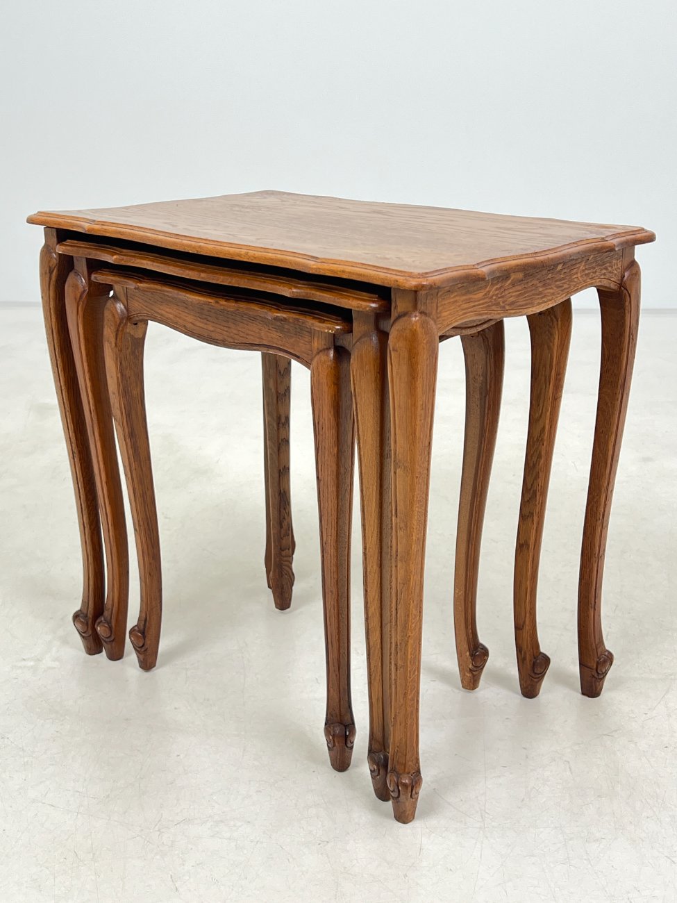 Ąžuoliniai lizdiniai staliukai 3 vnt. komplektas.