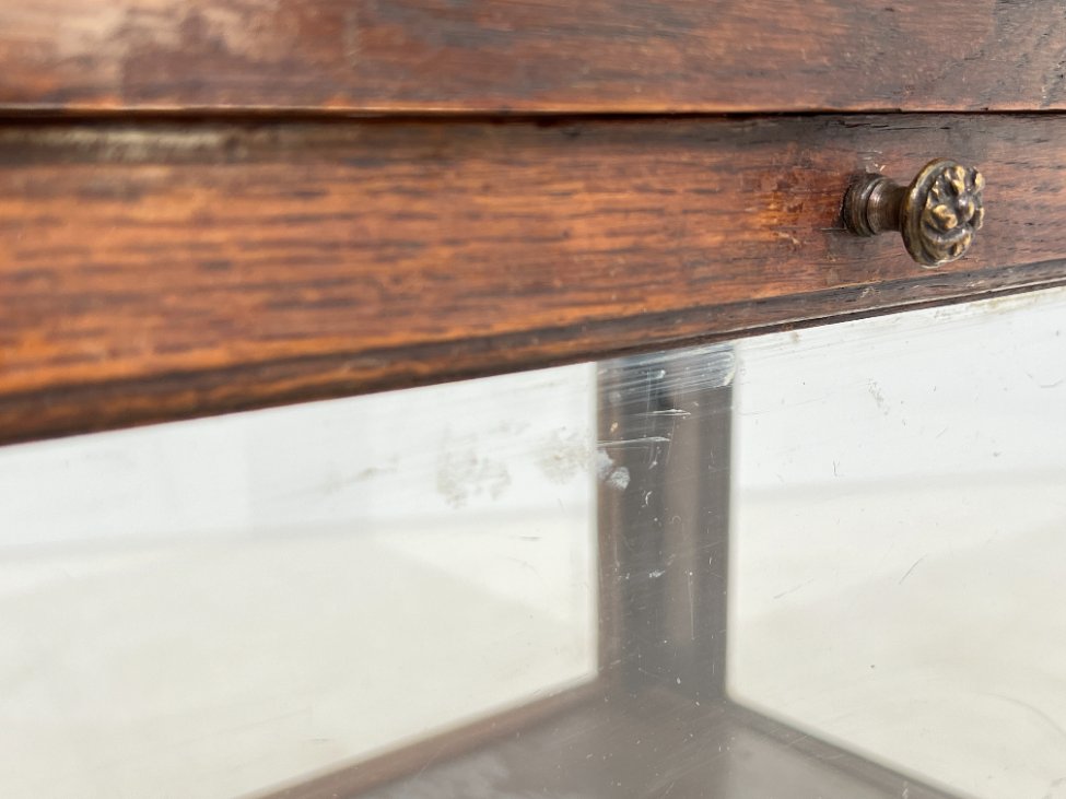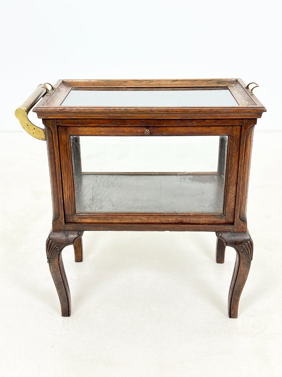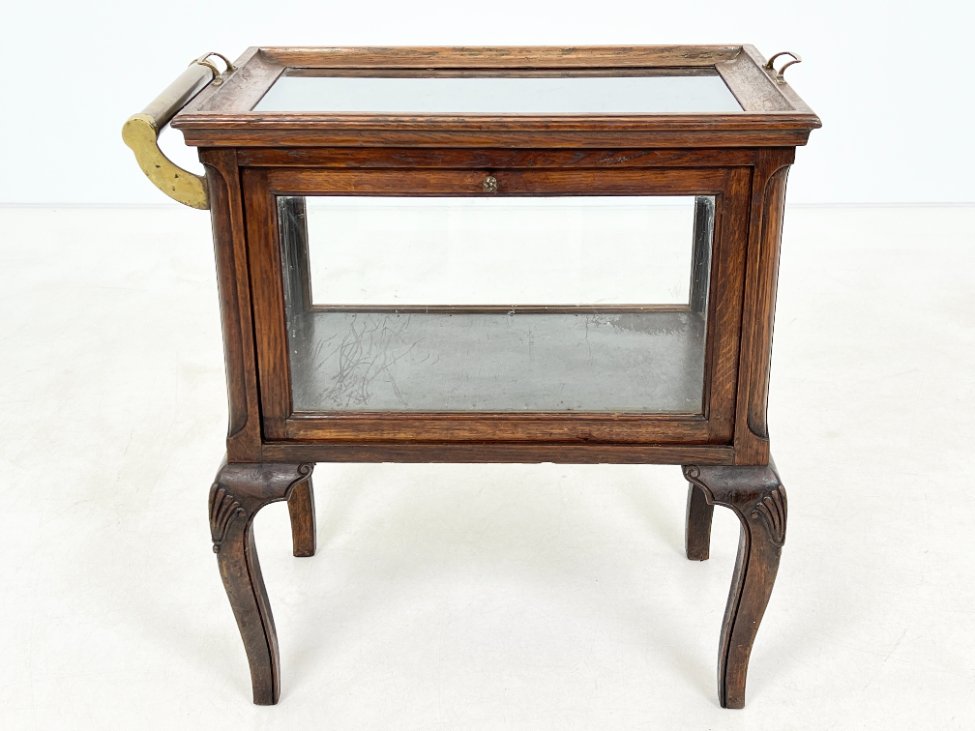 Ąžuolinis įstiklintas bariukas su padėklu.