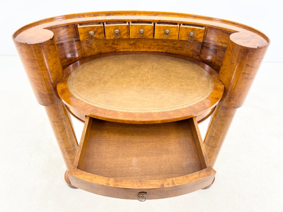 Biedermeier stiliaus riešutmedžio lukšto rašomasis stalas pagal Josef Danhauser modelį.