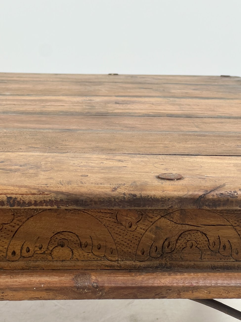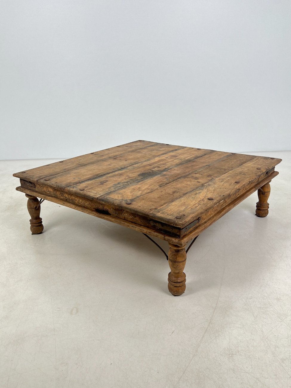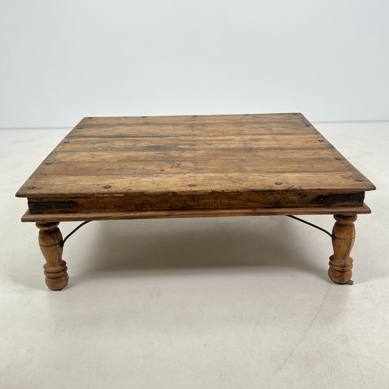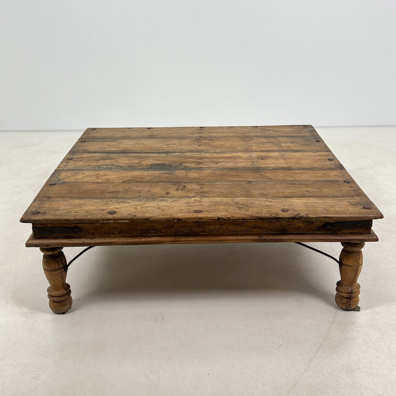 Indiškas kavos staliukas drožinėtais šonais 121x122x40 cm
