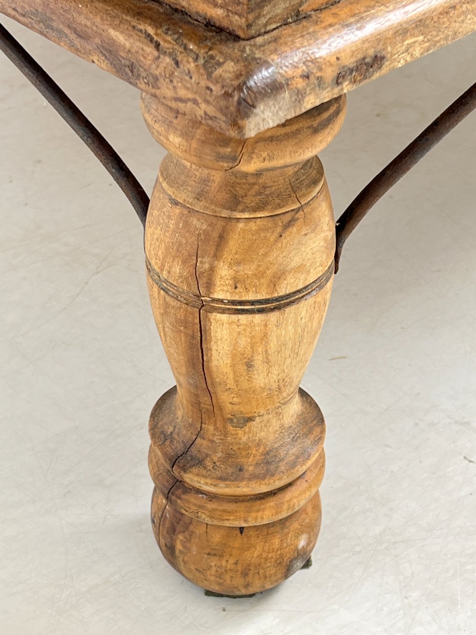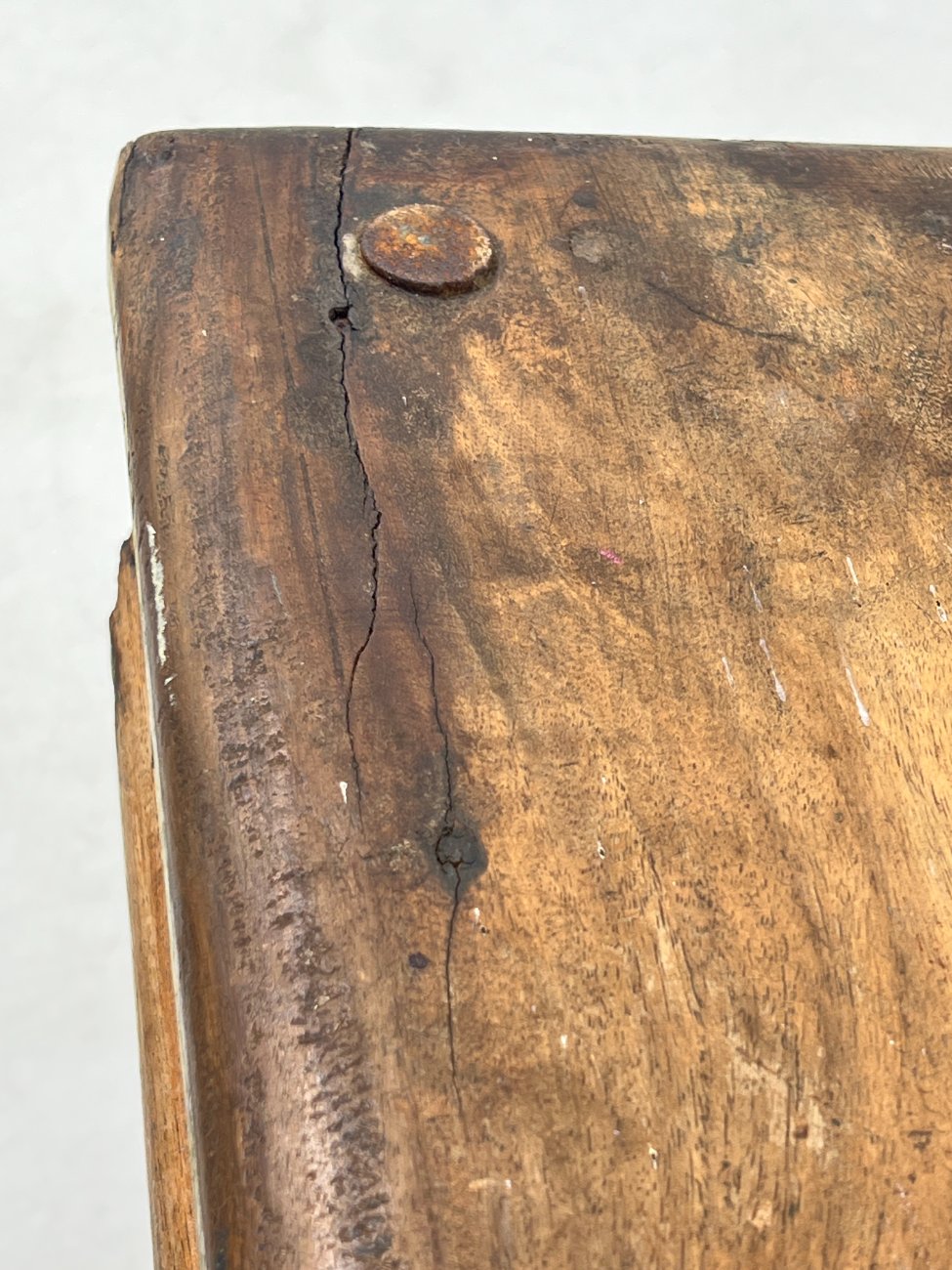 | Papildoma informacija | Ant kojų yra medienos įtrūkimų. Apdaužyti kampai. Ant stalviršio yra dėmių. Viena stalviršio kraštinė ištepta dažais. |