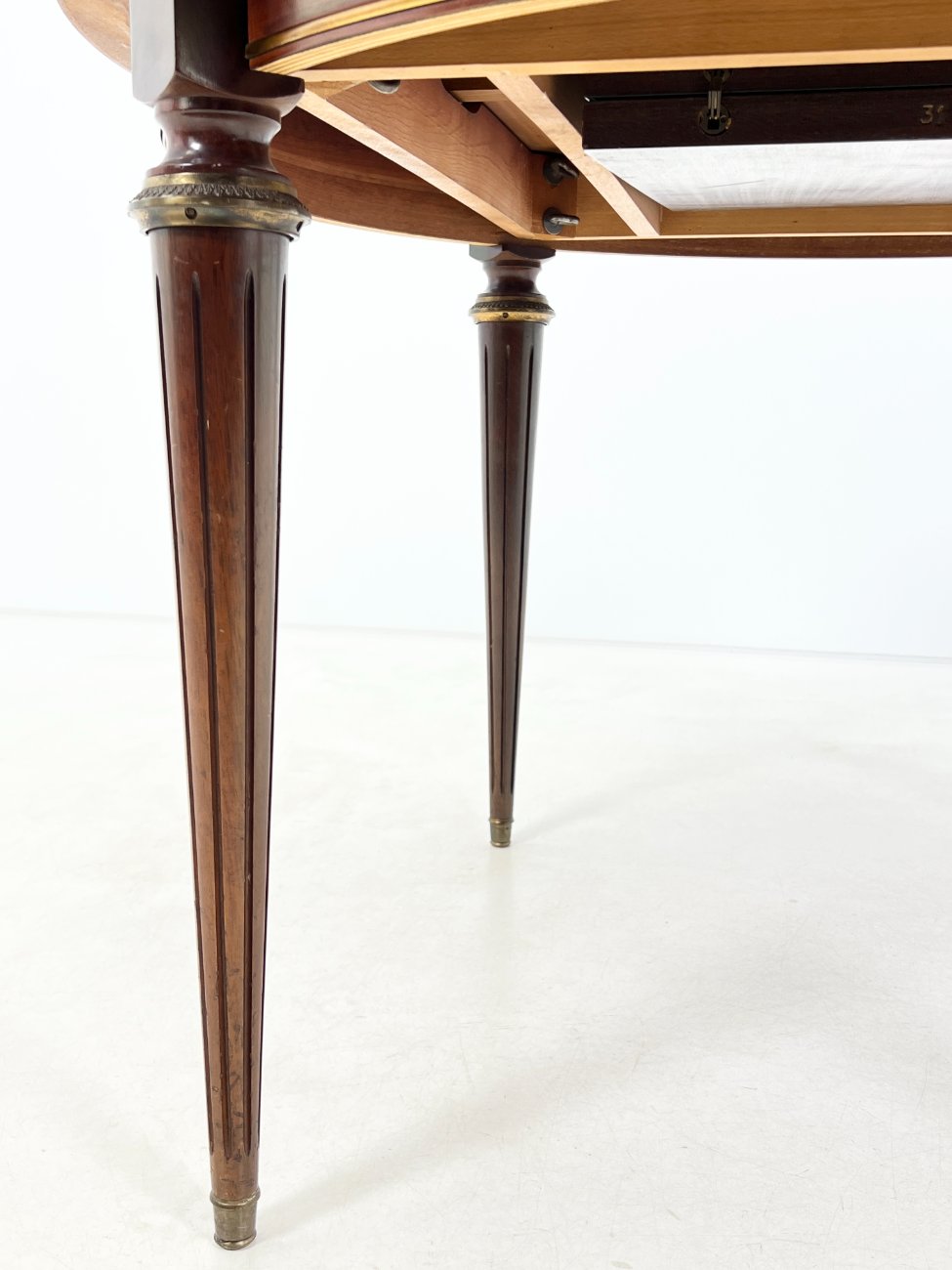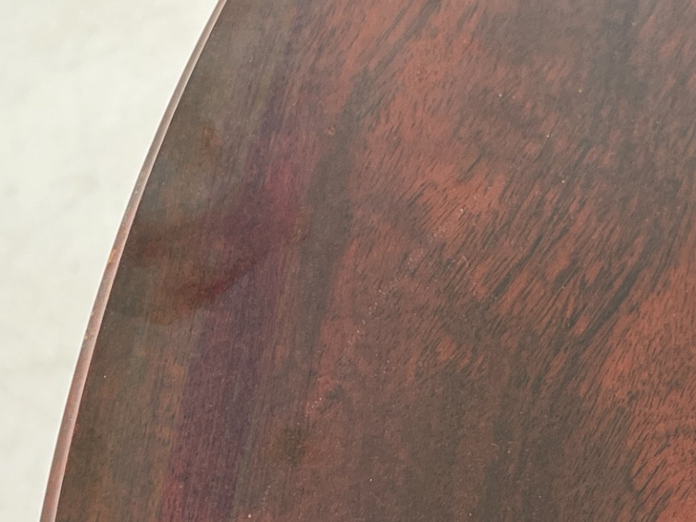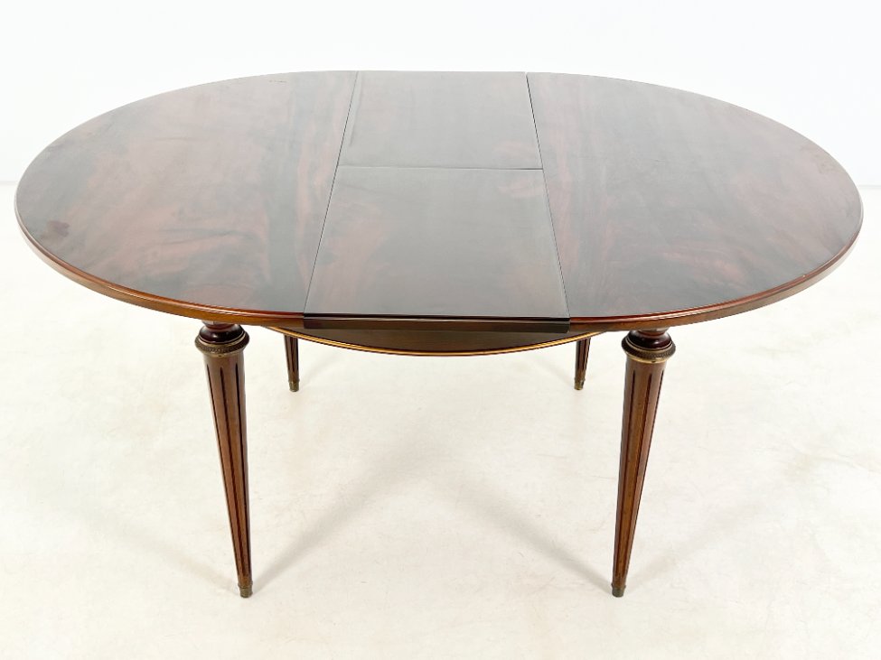 Išskleidžiamas raudonmedžio valgomojo stalas.