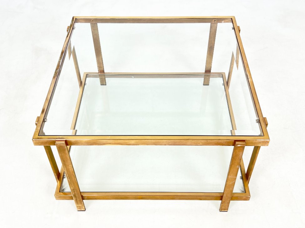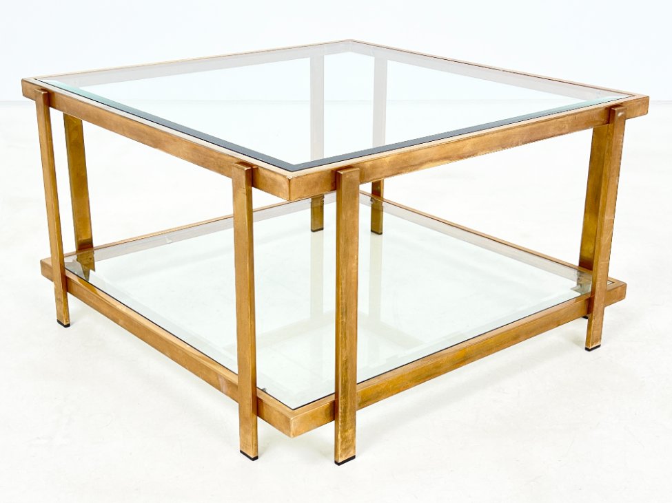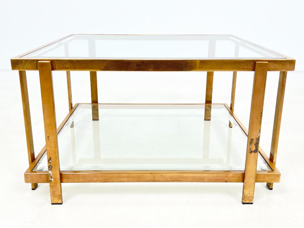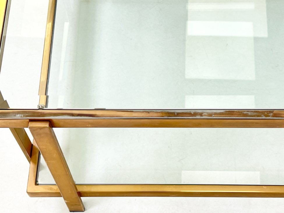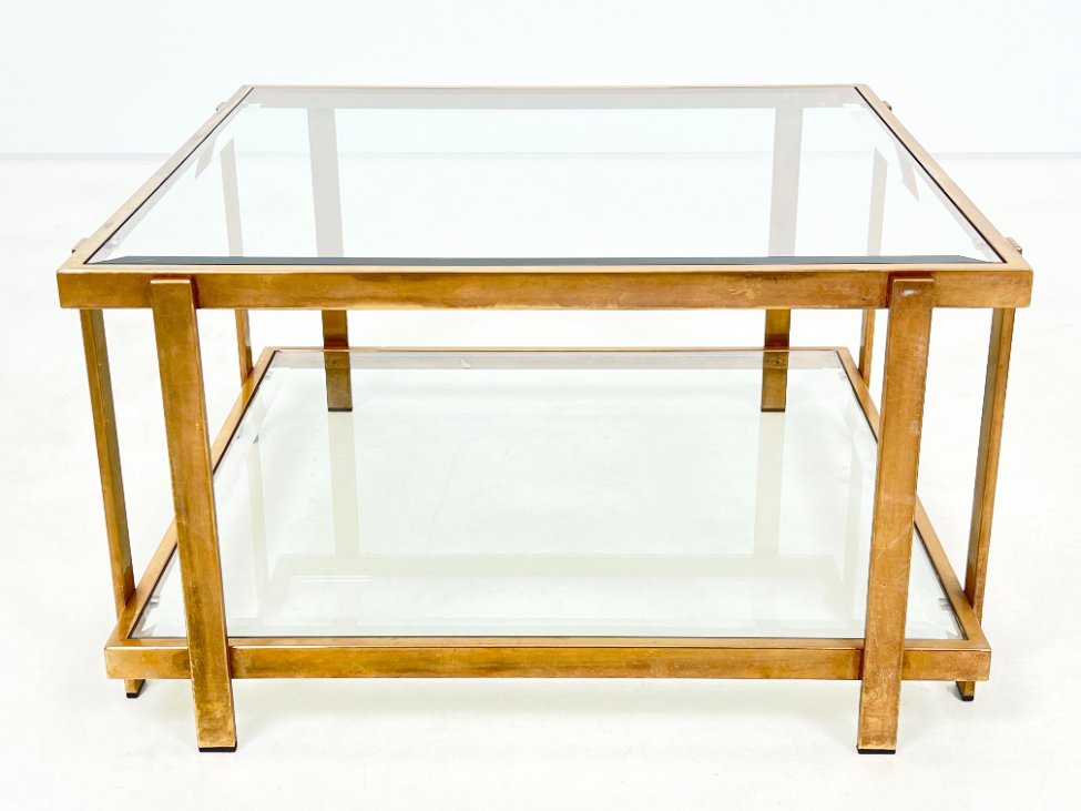 Metalinio rėmo staliukas stikliniais stalviršiumi ir lentyna 72×72,5×40 cm