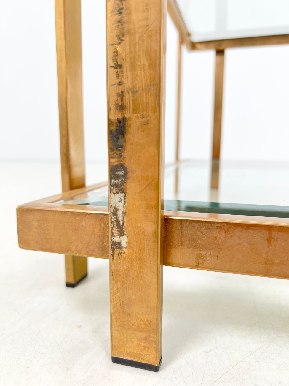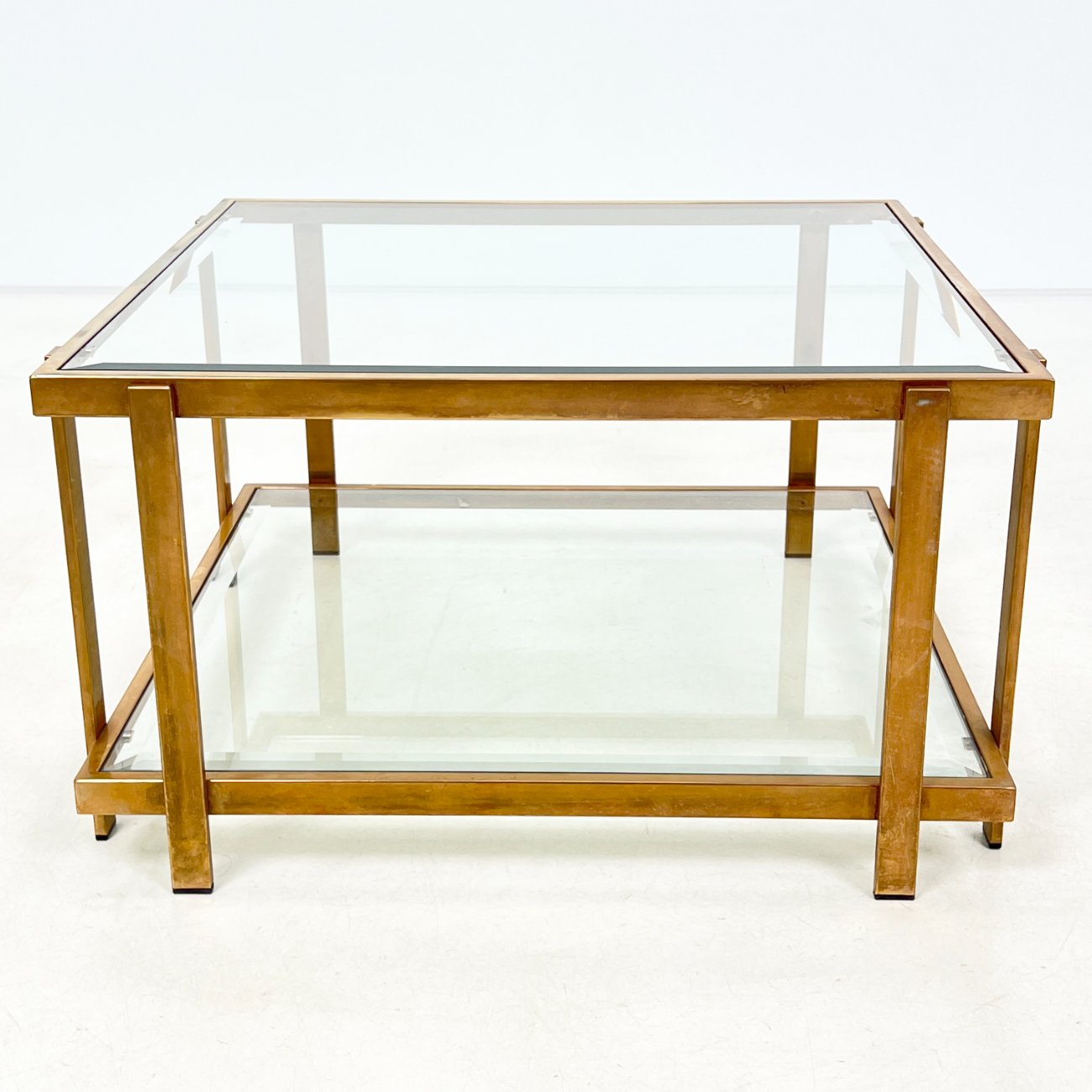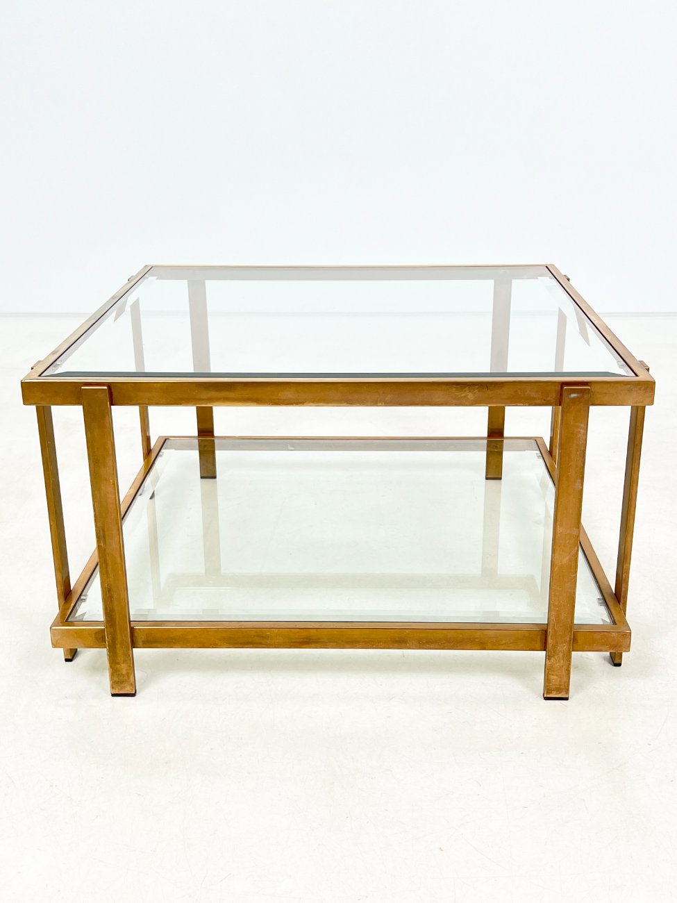 Metalinio rėmo staliukas stikliniais stalviršiumi ir lentyna 72×72,5×40 cm