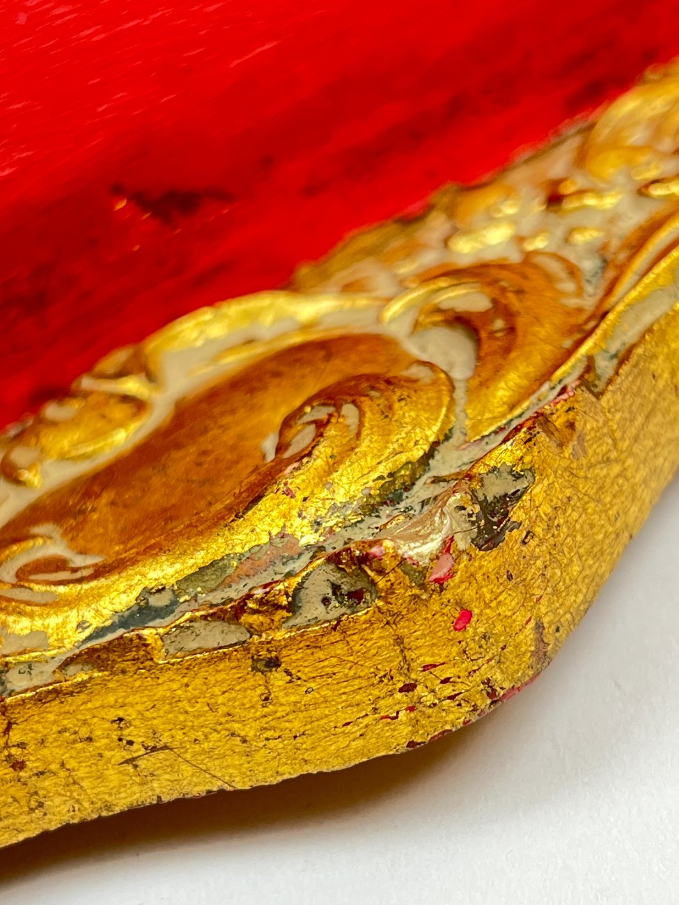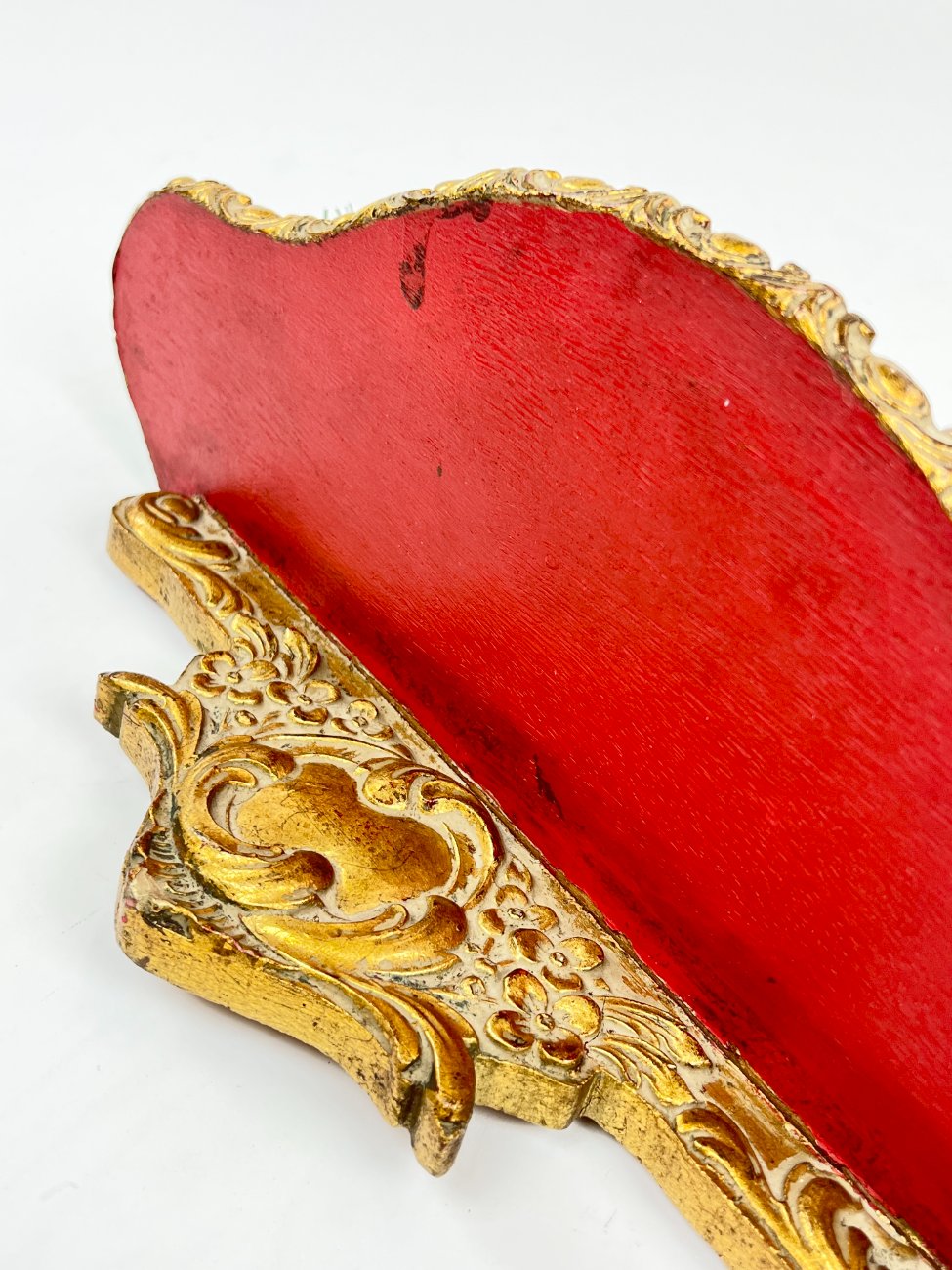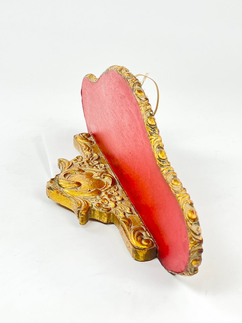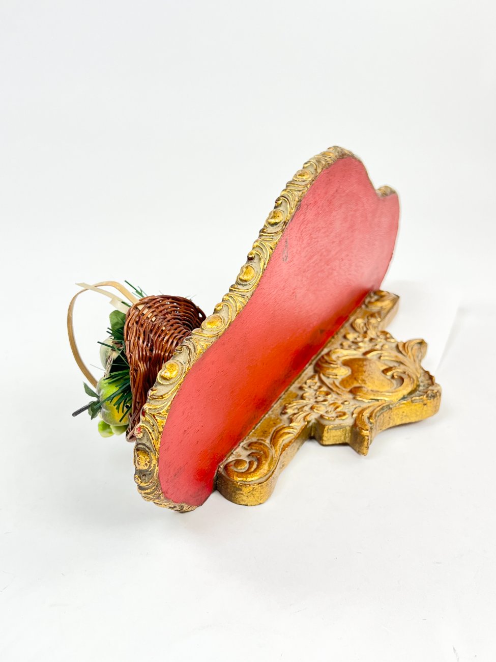 Pakabinama aukso spalvos konsolė su paukščio lizdo dekoracija.