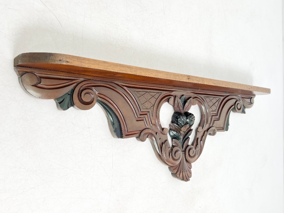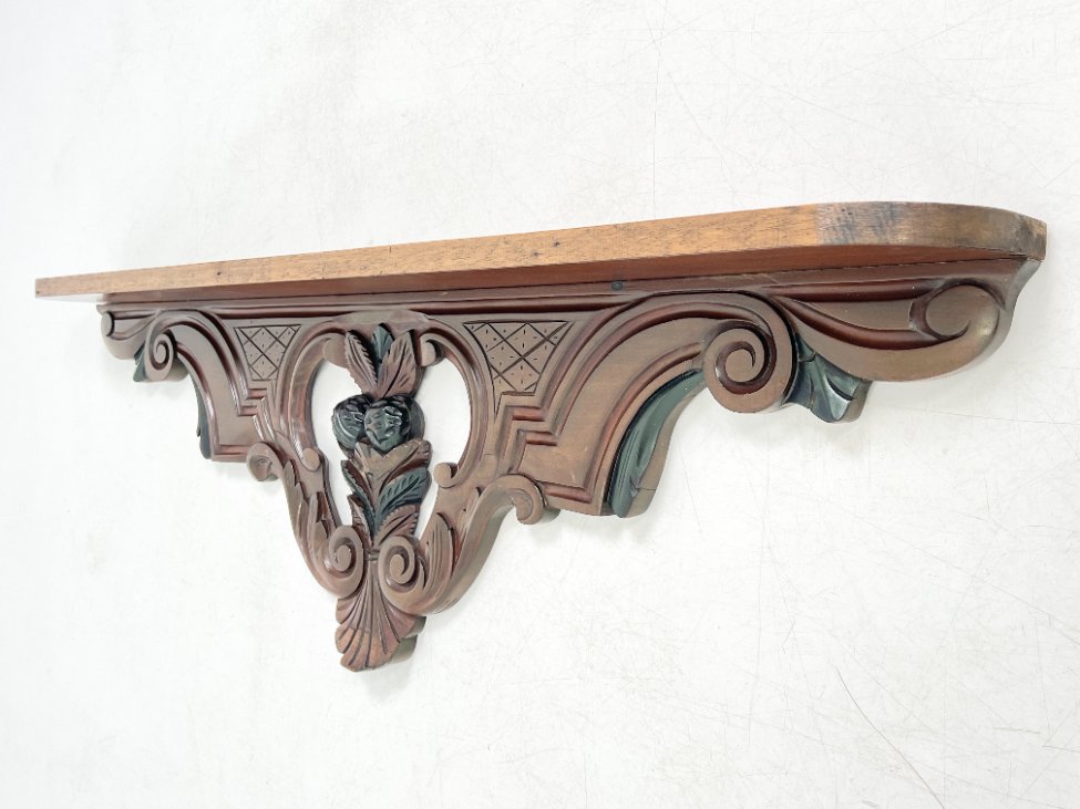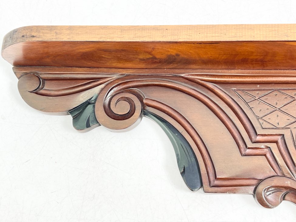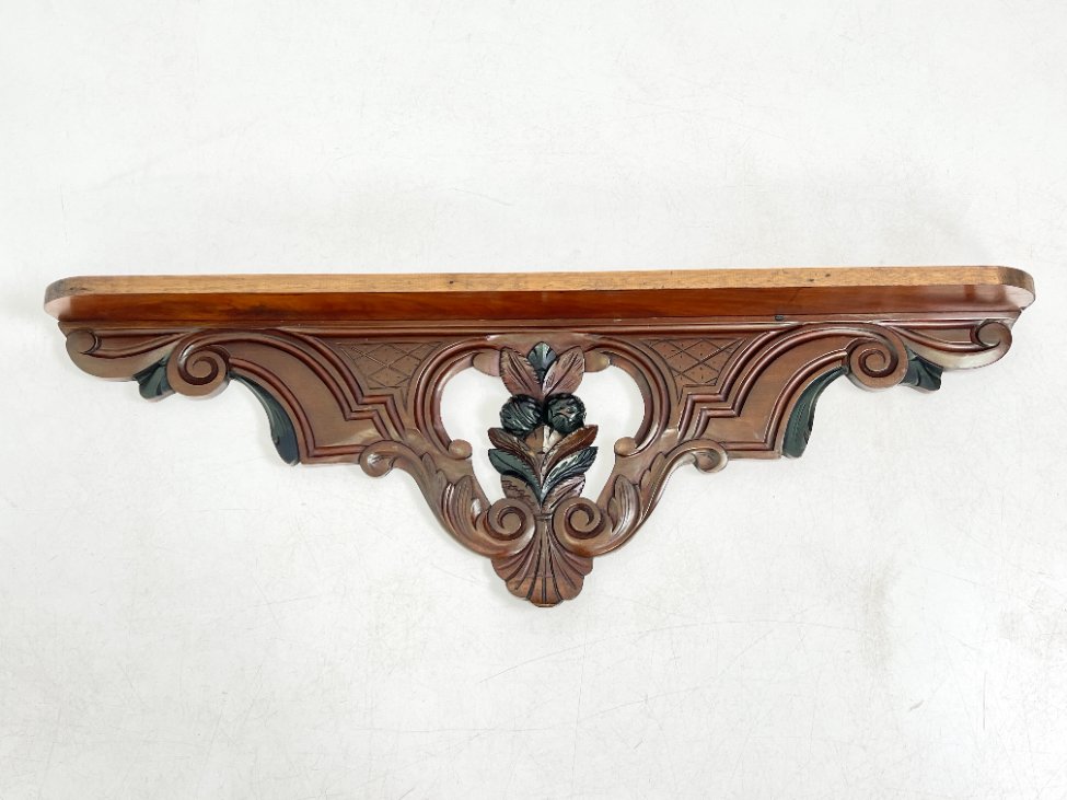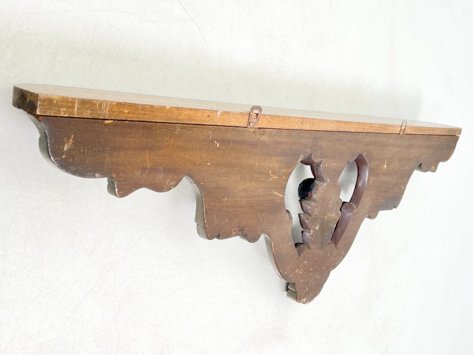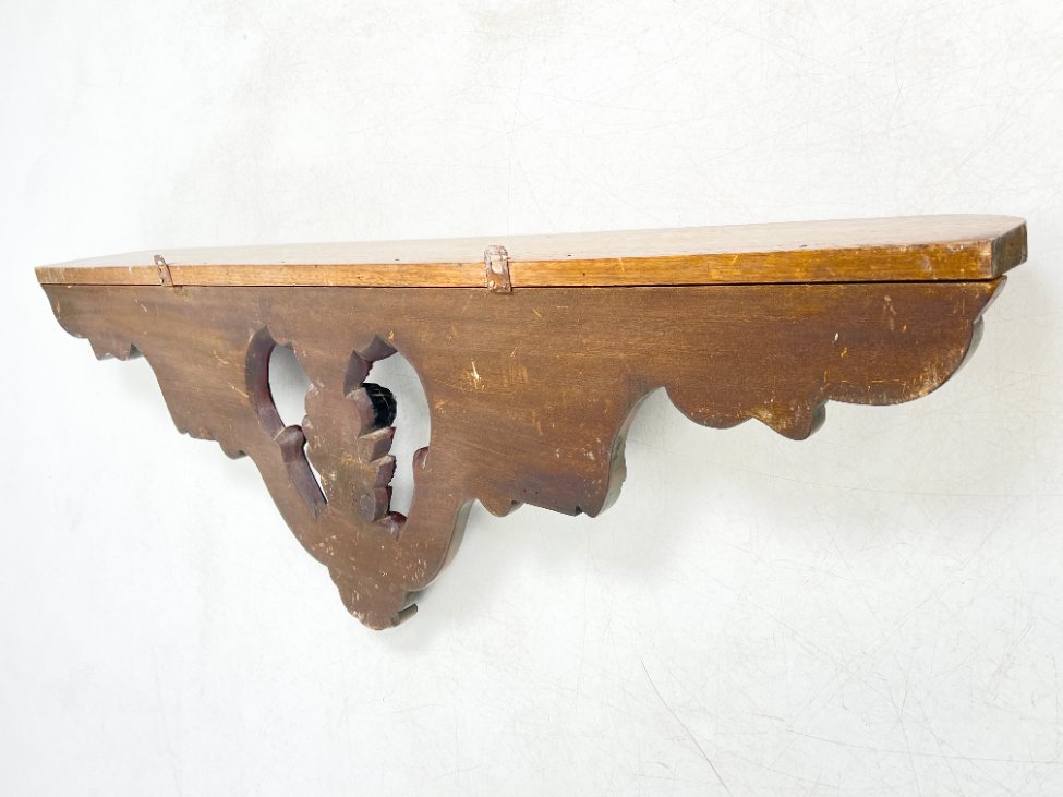 Pakabinama sieninė drožinėta raudonmedžio konsolė.