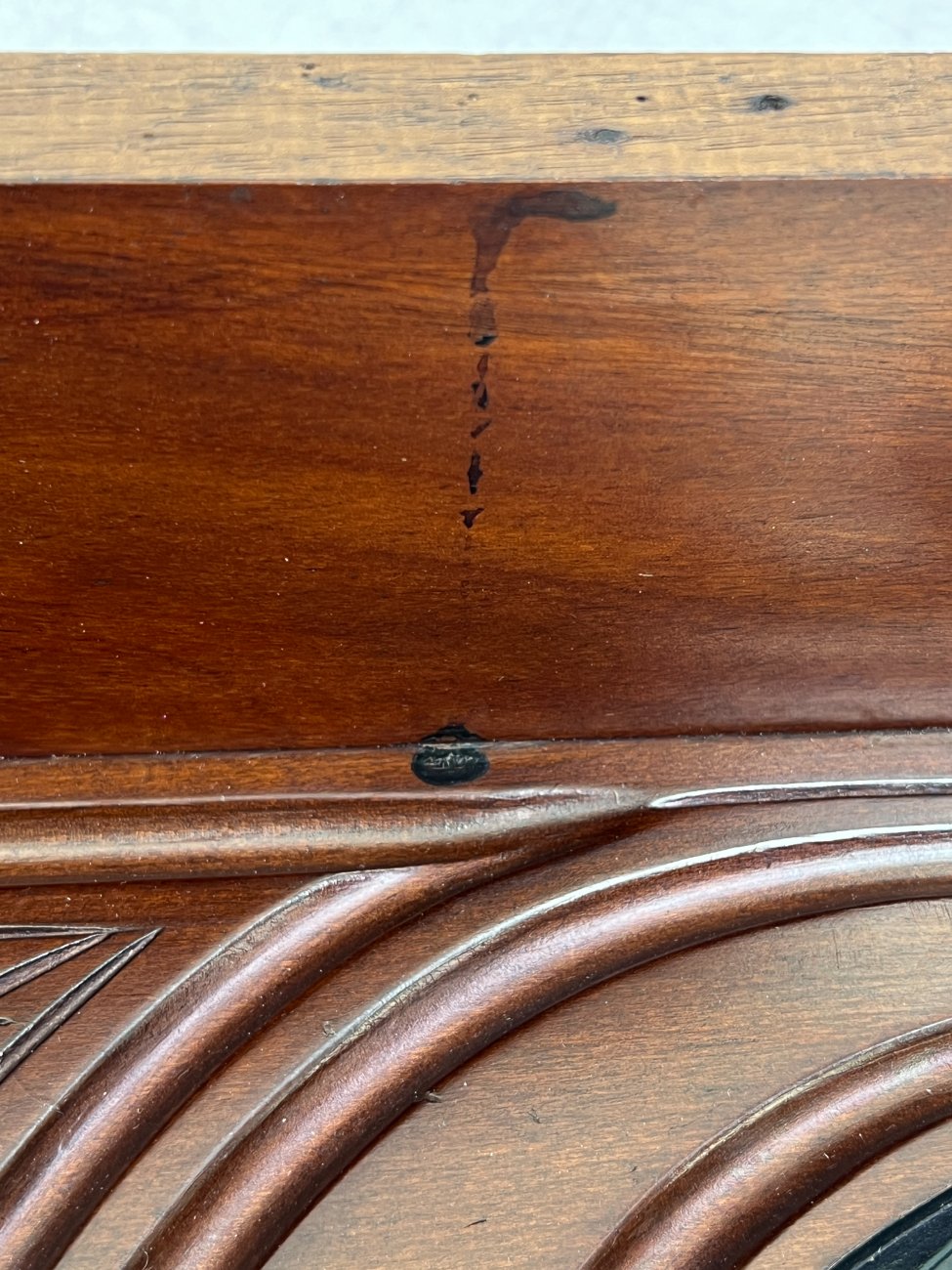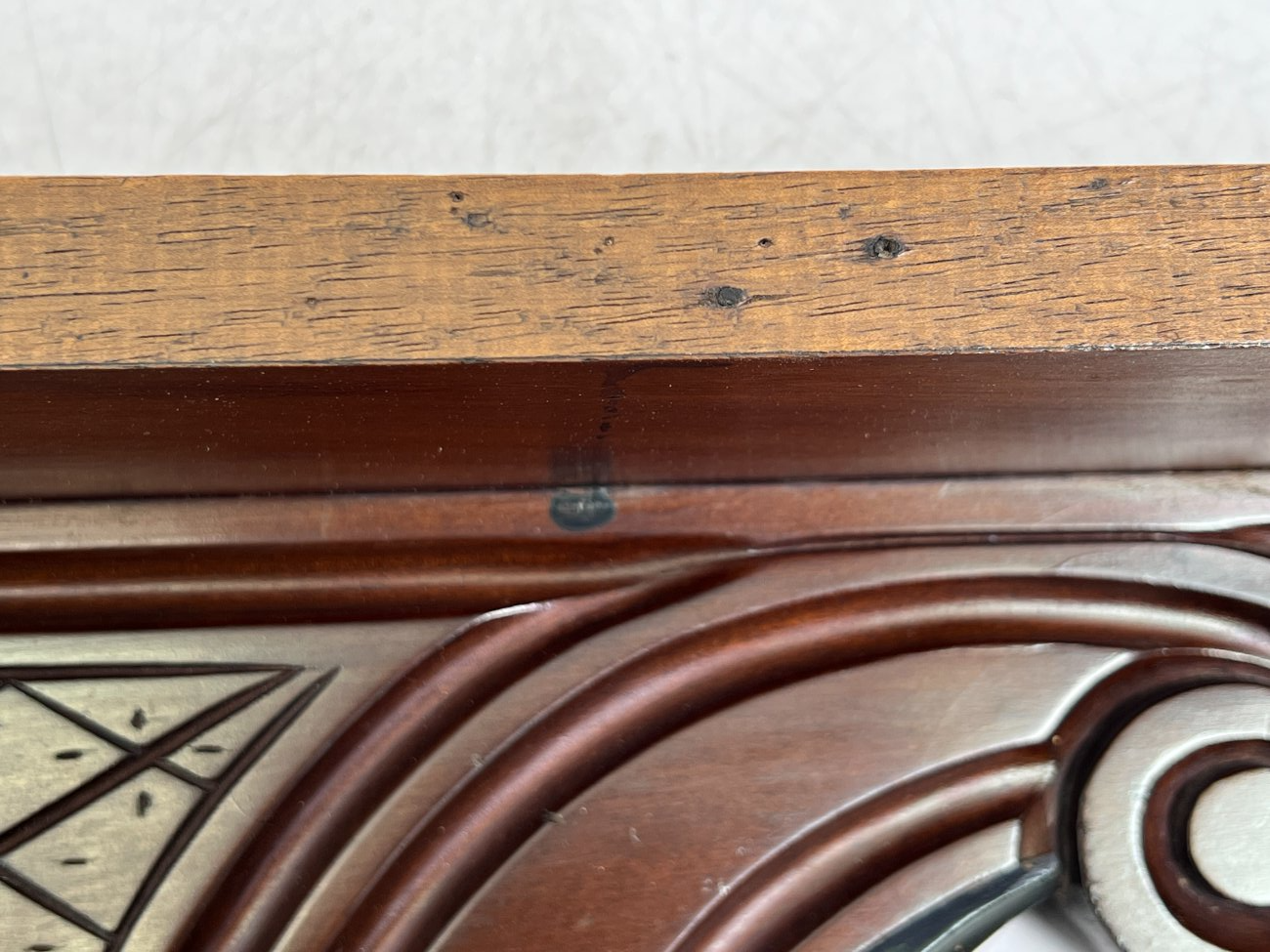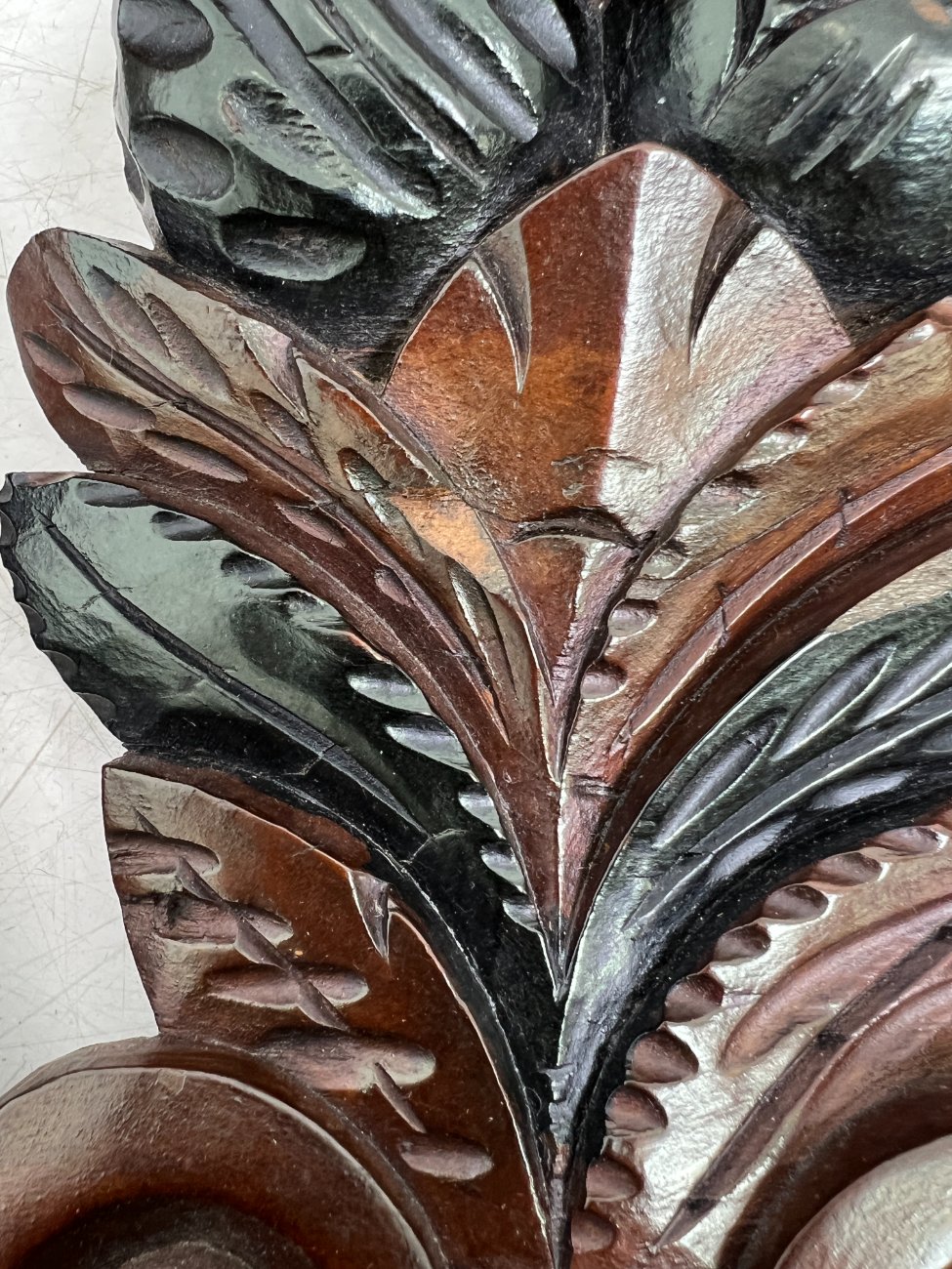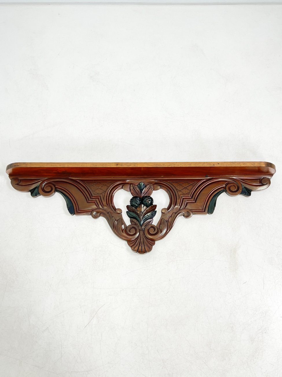 Pakabinama sieninė drožinėta raudonmedžio konsolė.