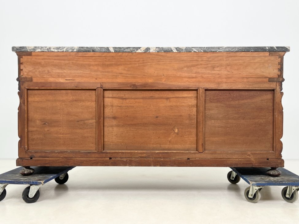 Prabangi raudonmedžio konsolė marmuriniu stalviršiumi 54x165x79 cm