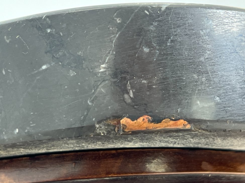 | Papildoma informacija | Ant marmurinio stalviršio kraštinės yra apdaužymų. Per visą paviršių yra pabraižymų ir įmušimų. |