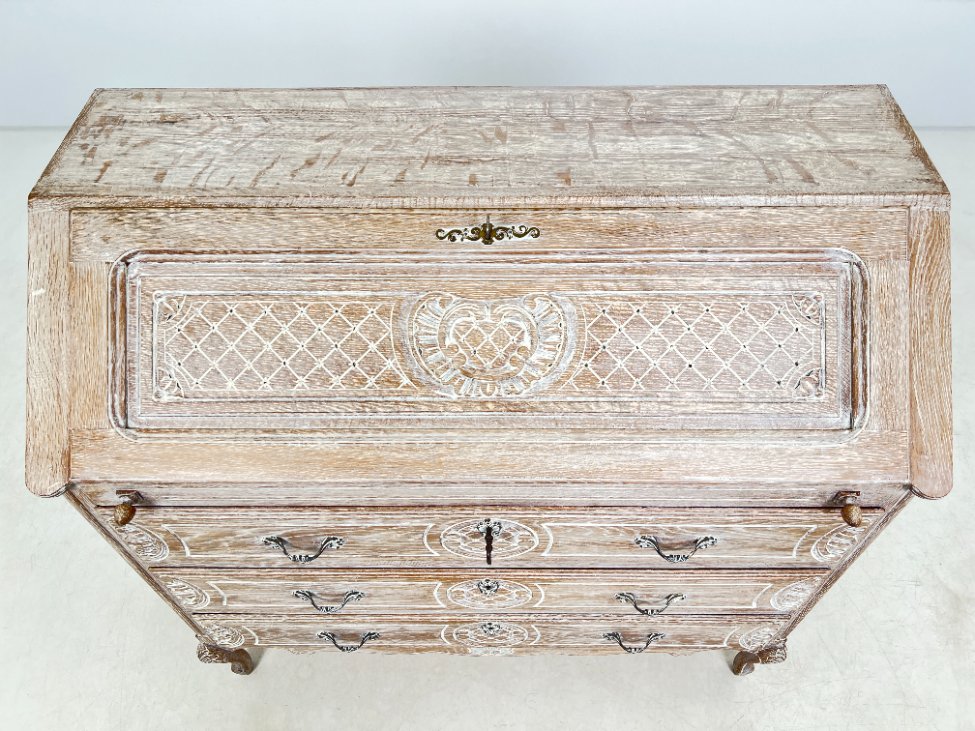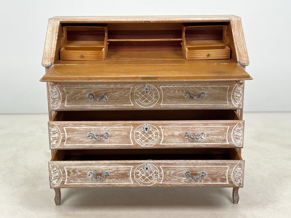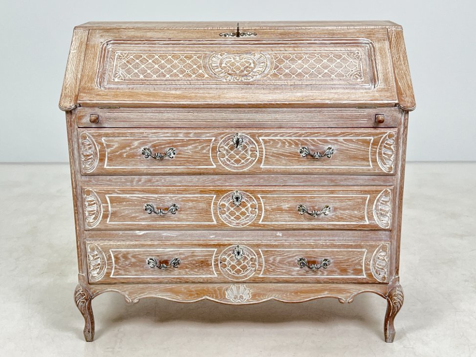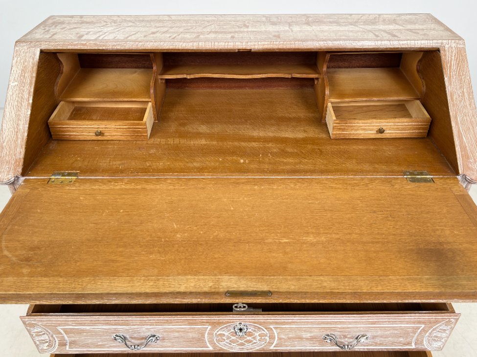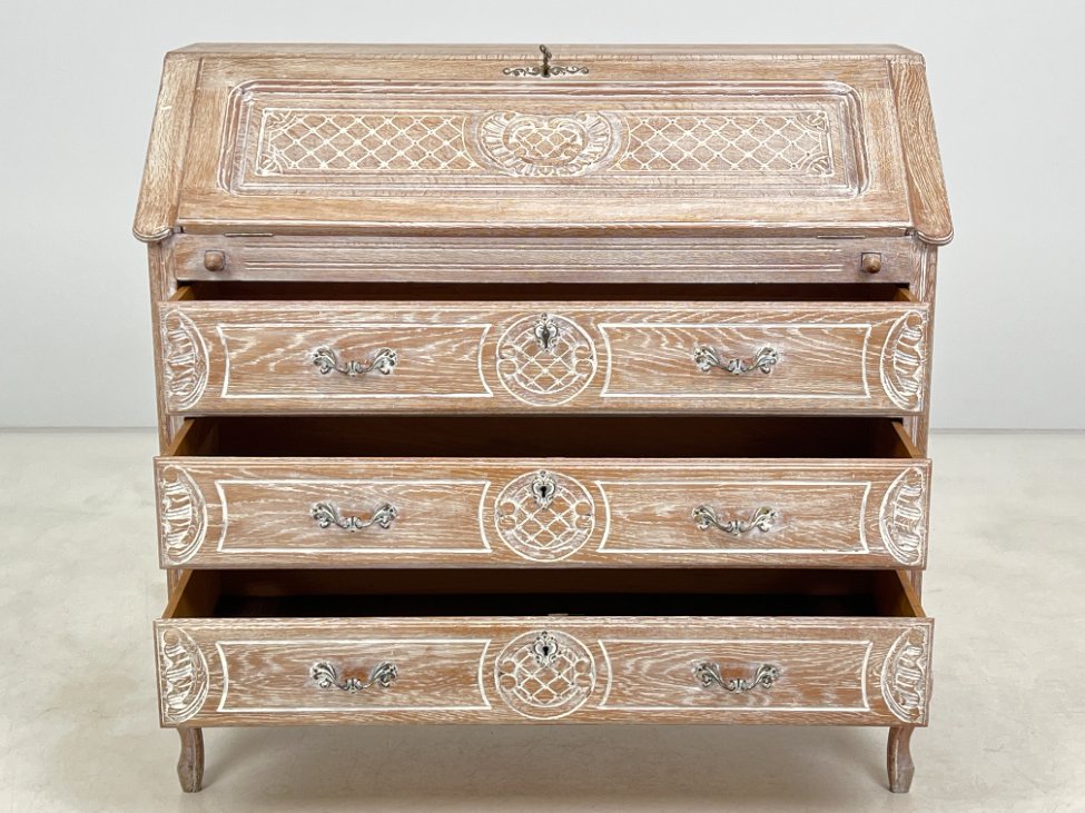 Provanso stiliaus ąžuolinis trijų stalčių sekreteras.