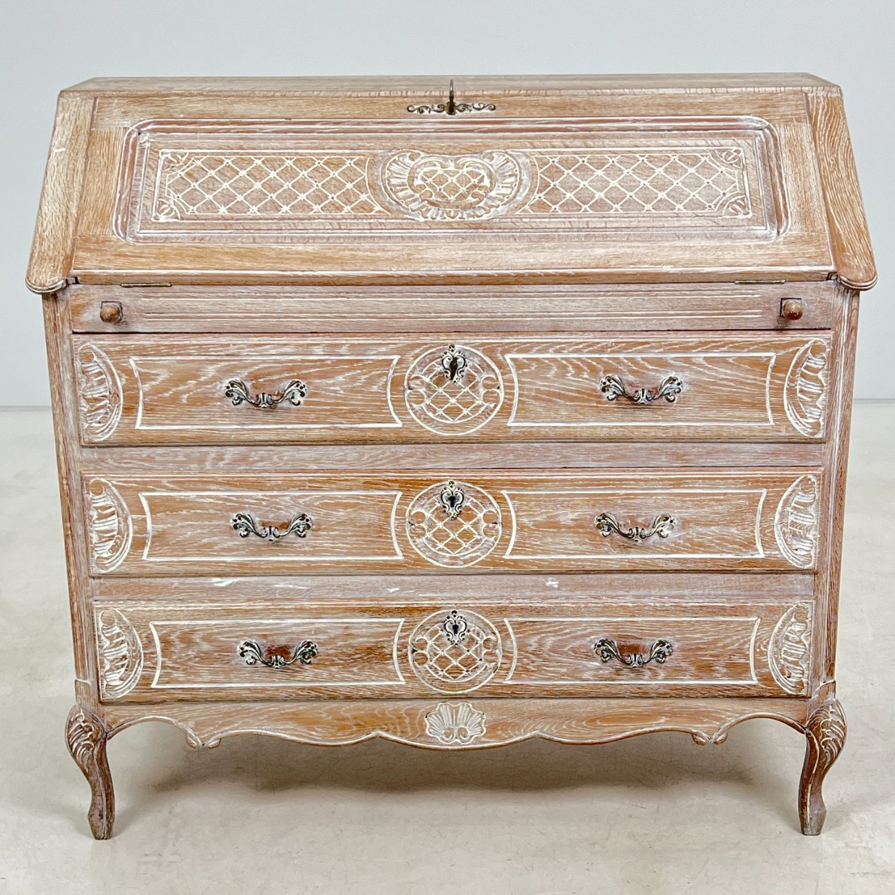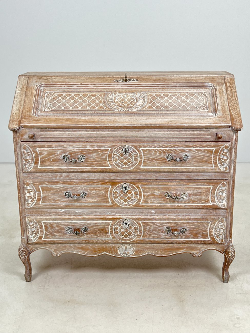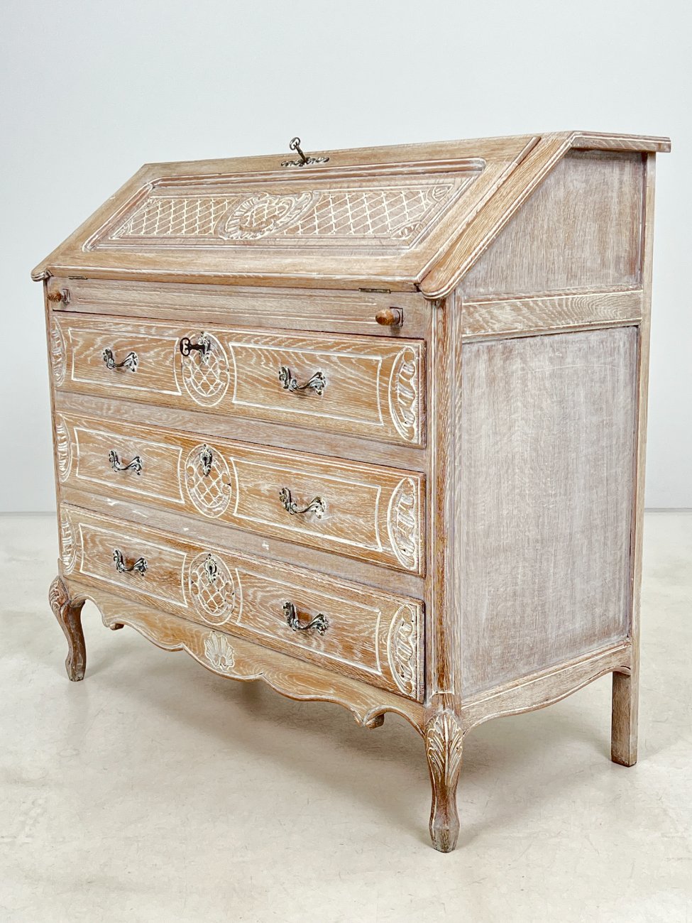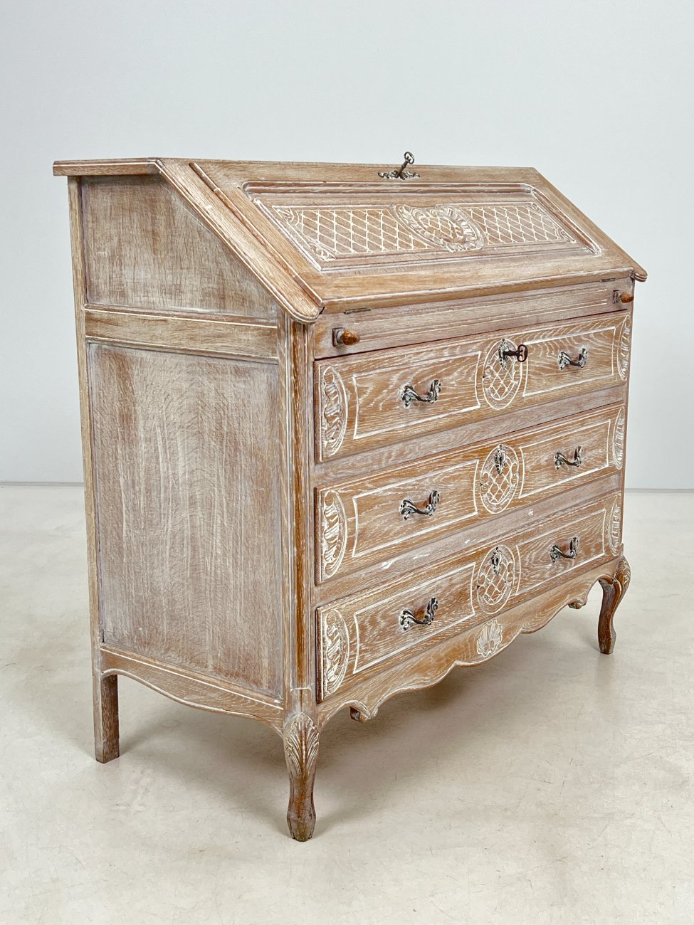 Provanso stiliaus ąžuolinis trijų stalčių sekreteras.