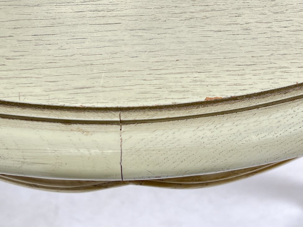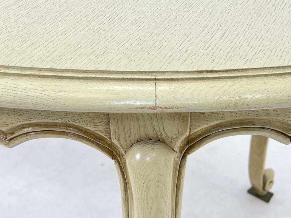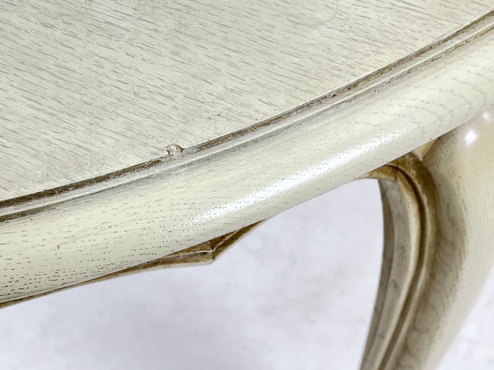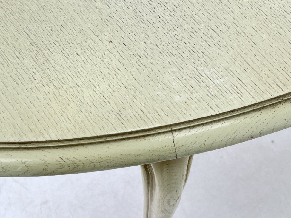 | Papildoma informacija | Skiriasi vidurinės išskleidžiamos dalies spalva. Yra stalviršiaus ir kojų įmušimų ir pabraižymų. Ant stalviršiaus yra dėmių. |