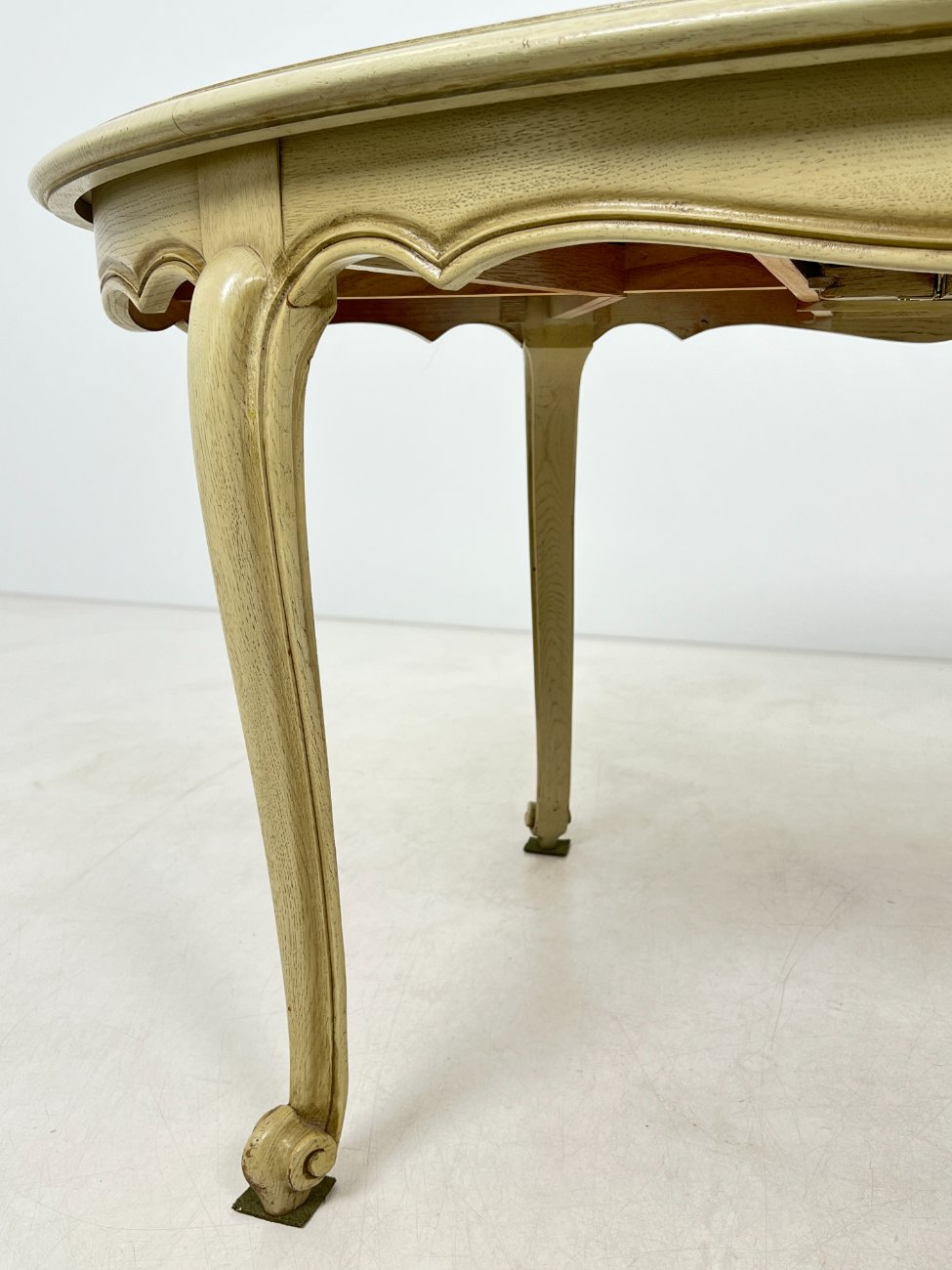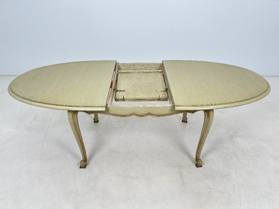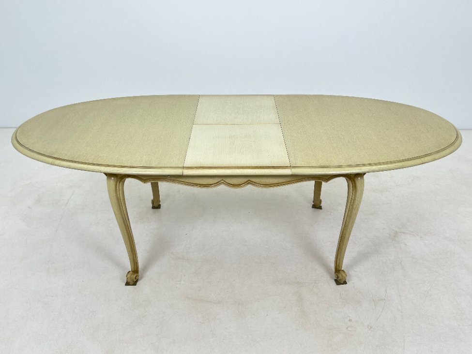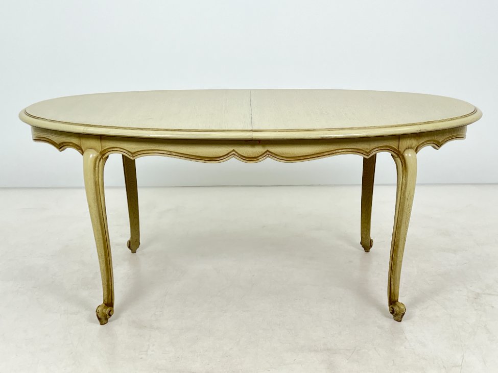 Provanso stiliaus išskleidžiamas medinis valgomojo stalas.
