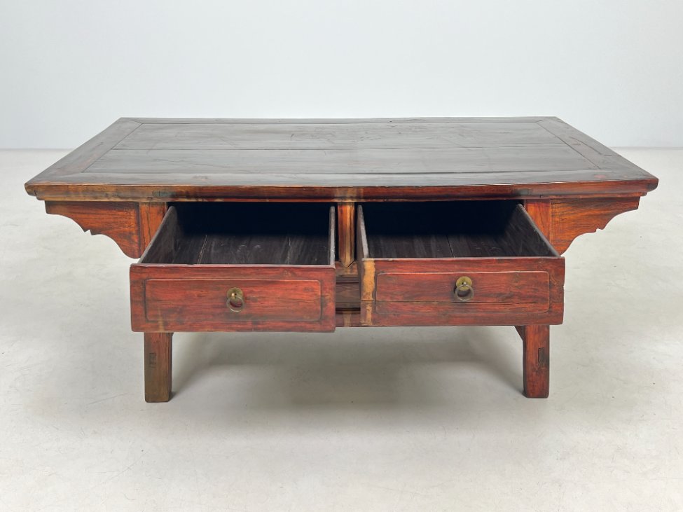 Rytietiško stiliaus medinis staliukas su stalčiais 65x119x50 cm