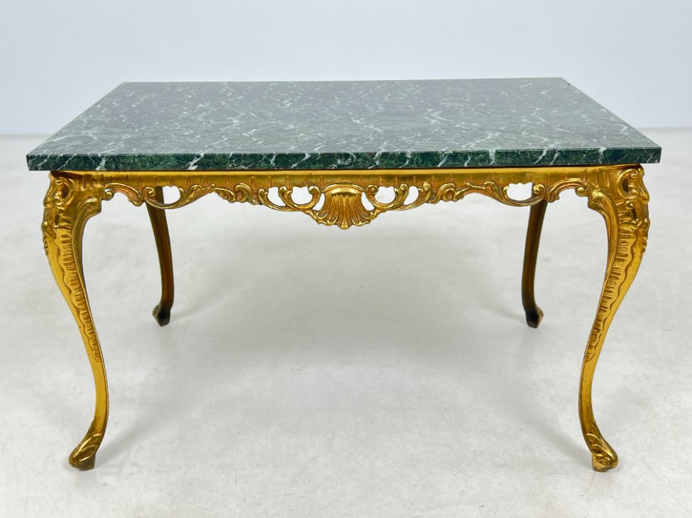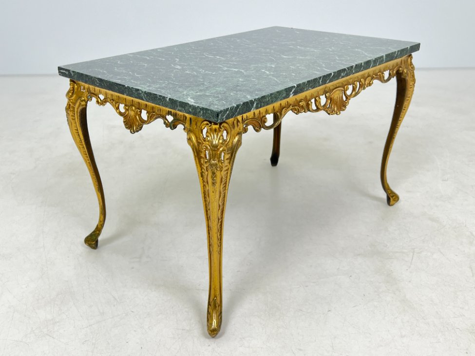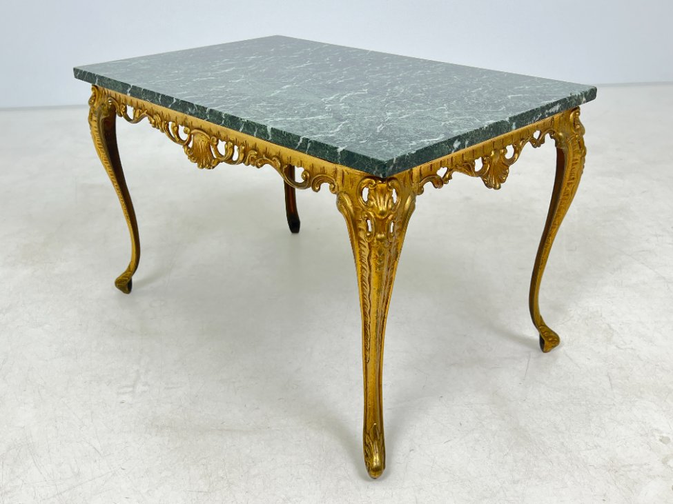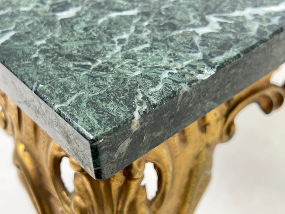 Stačiakampis žalvario rėmo staliukas akmeniniu stalviršiumi 50,5x81x49,5 cm