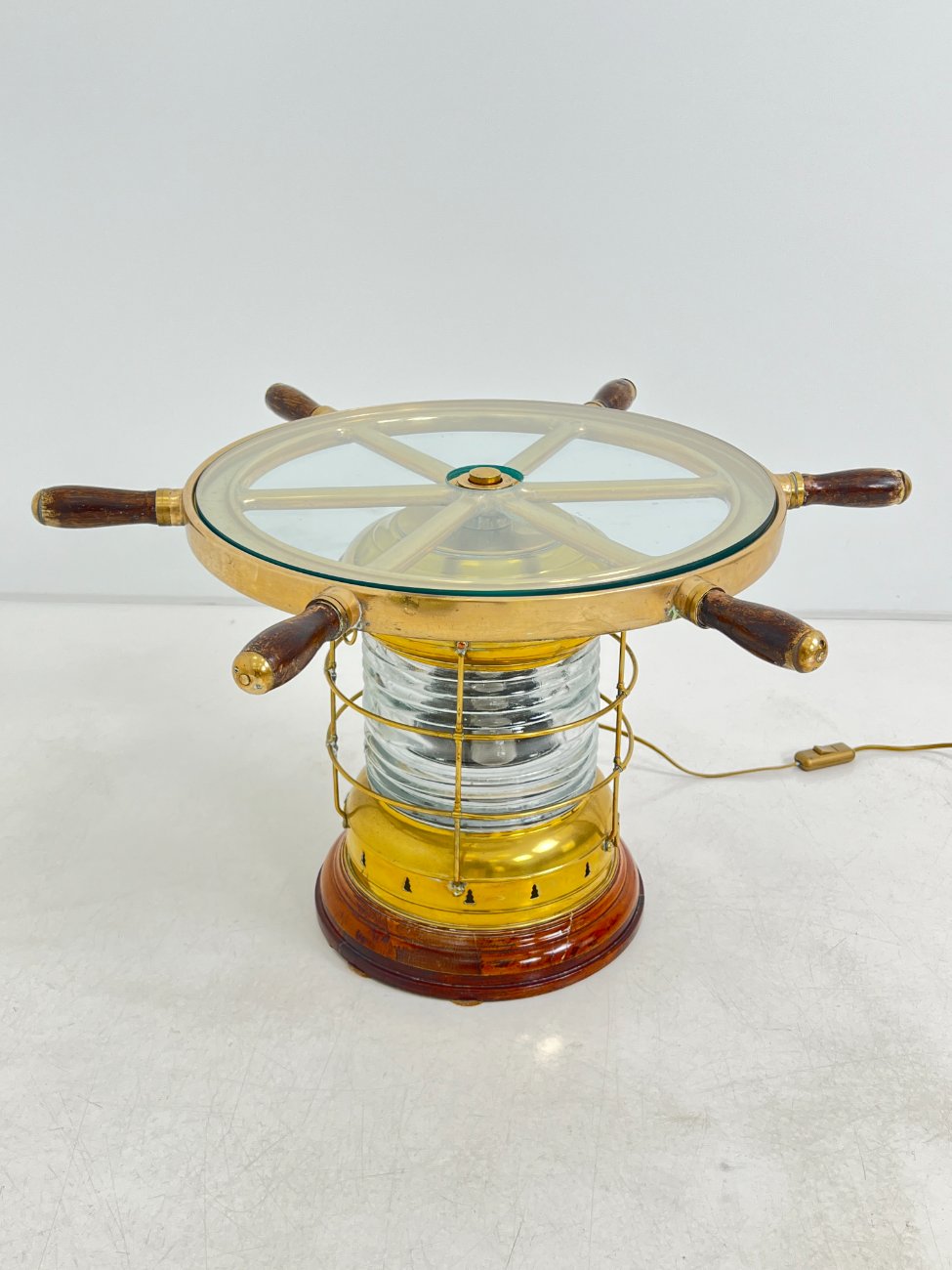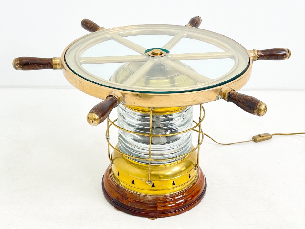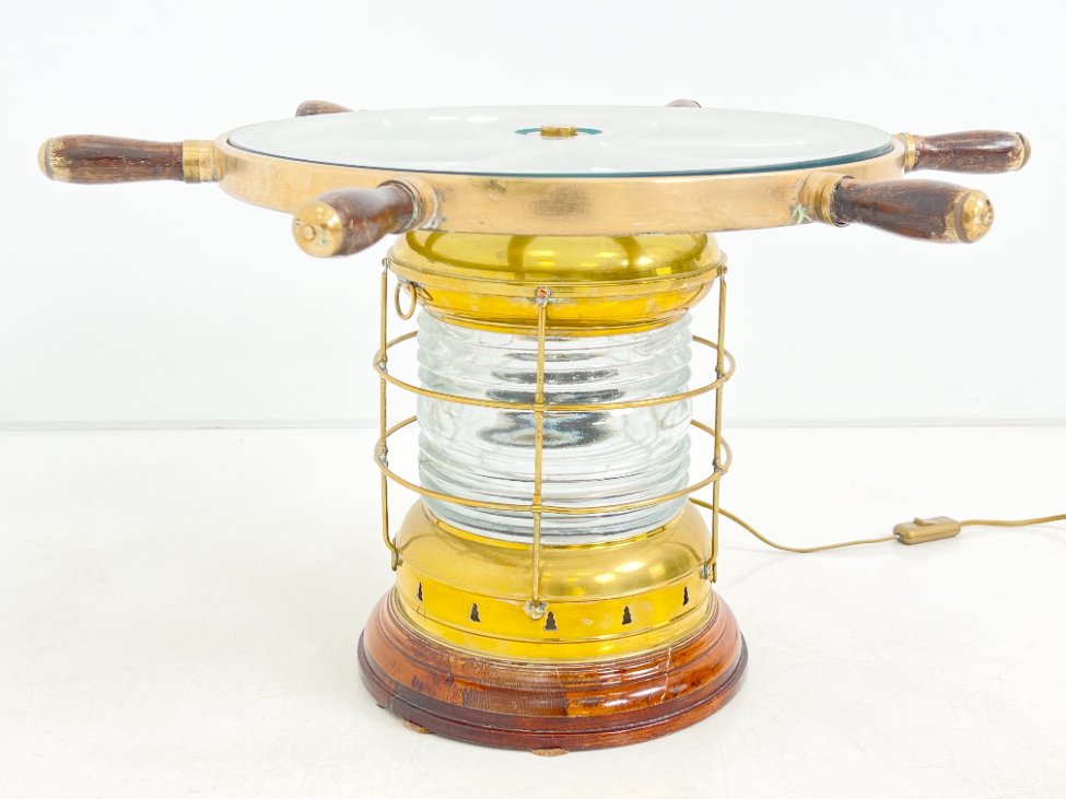 Staliukas iš jūrinio žibinto ir laivo vairo, su apšvietimu 70x70x41 cm