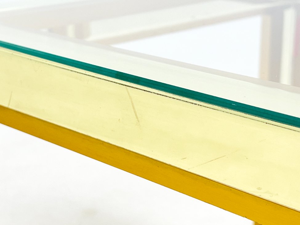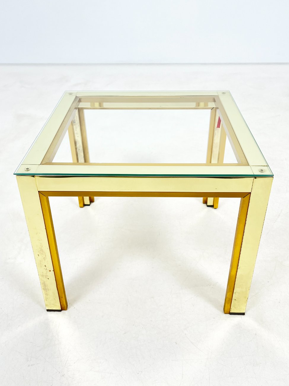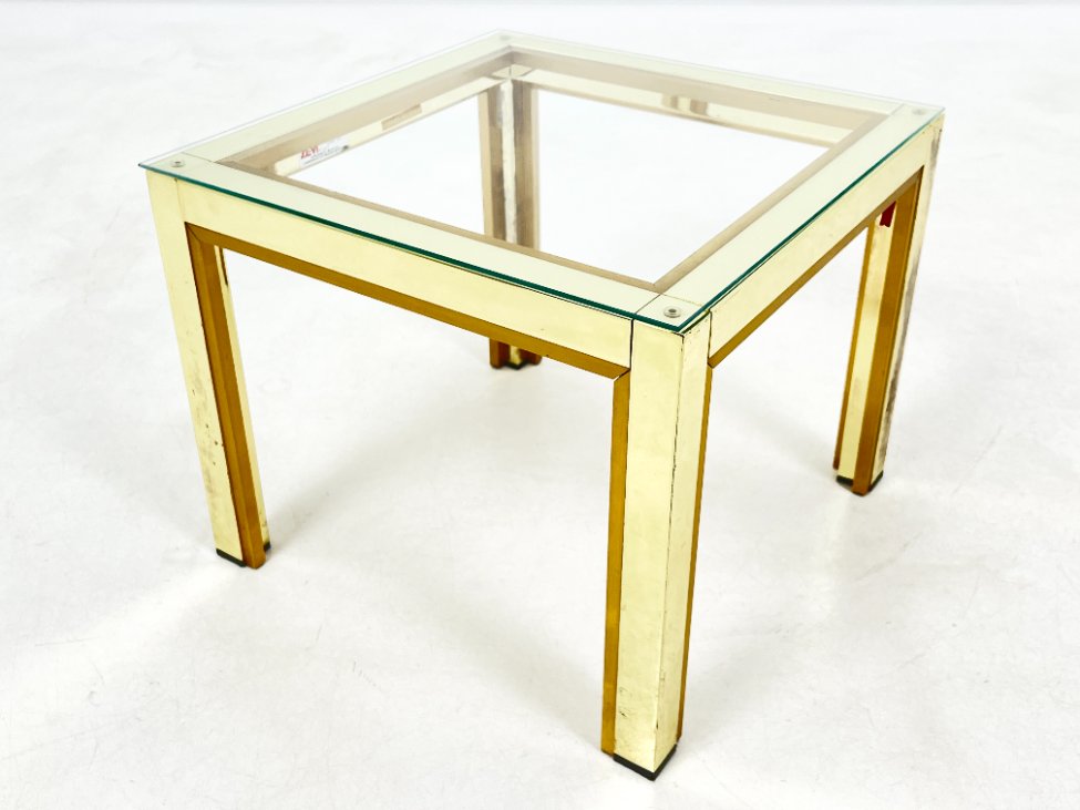 Žalvarinis kvadratinis staliukas su stiklu 46,5×46,5×37,5 cm