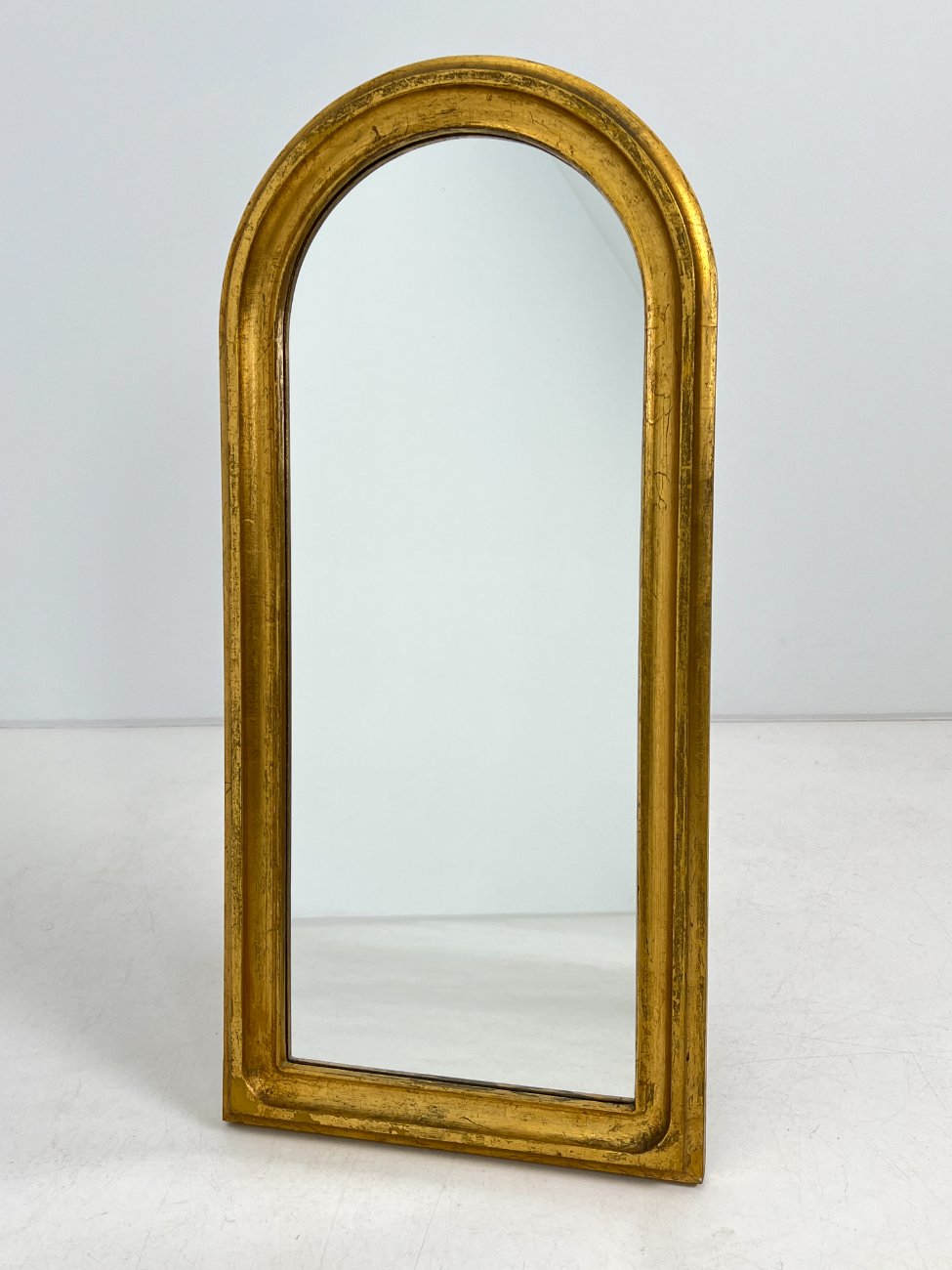 Arkos formos veidrodis sendintame aukso spalvos rėme 4,5×34,5×73,5 cm