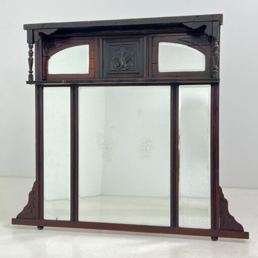 Kabinamas veidrodis su raudonmedžio rėmu ir lentynėle.