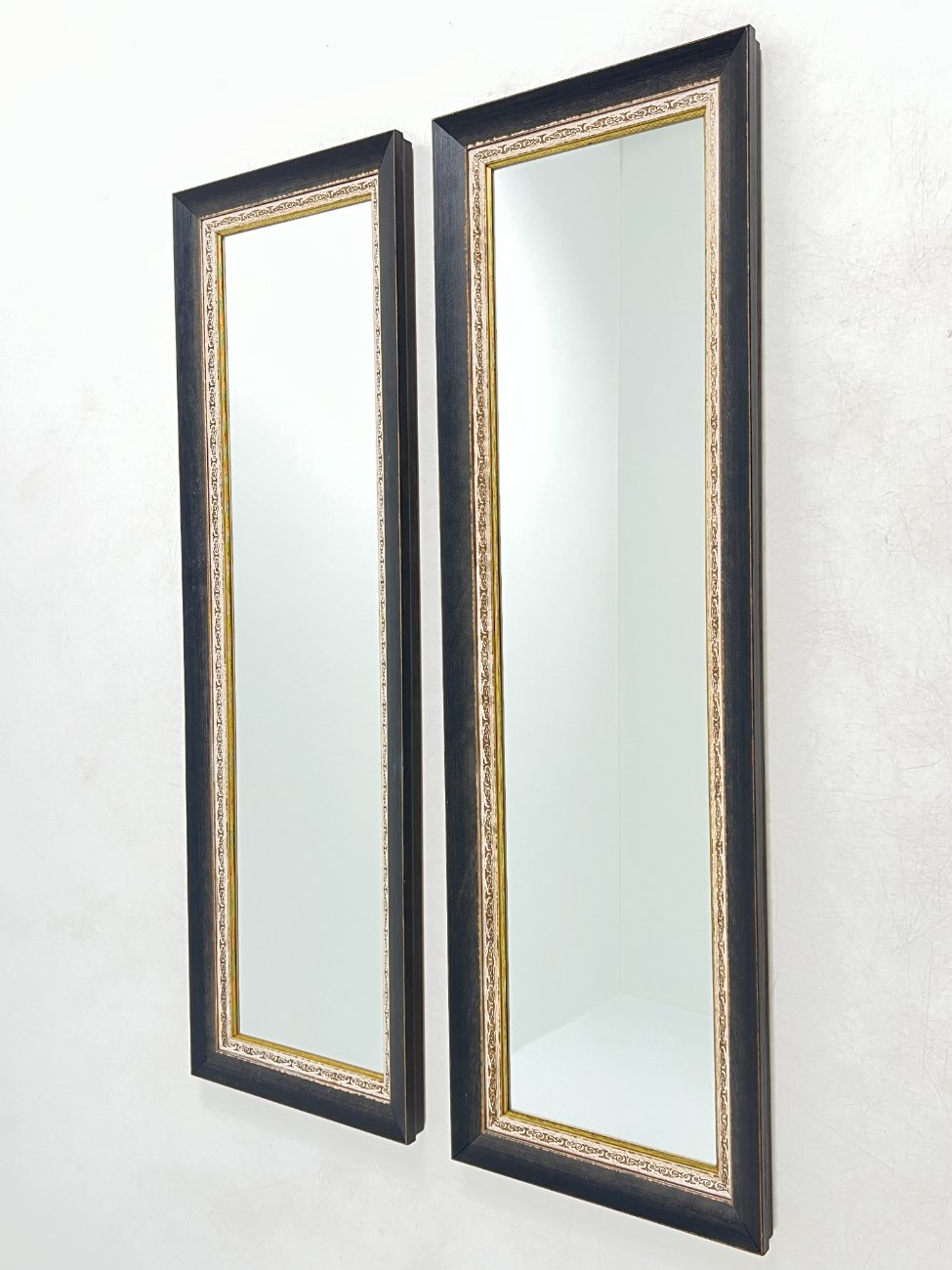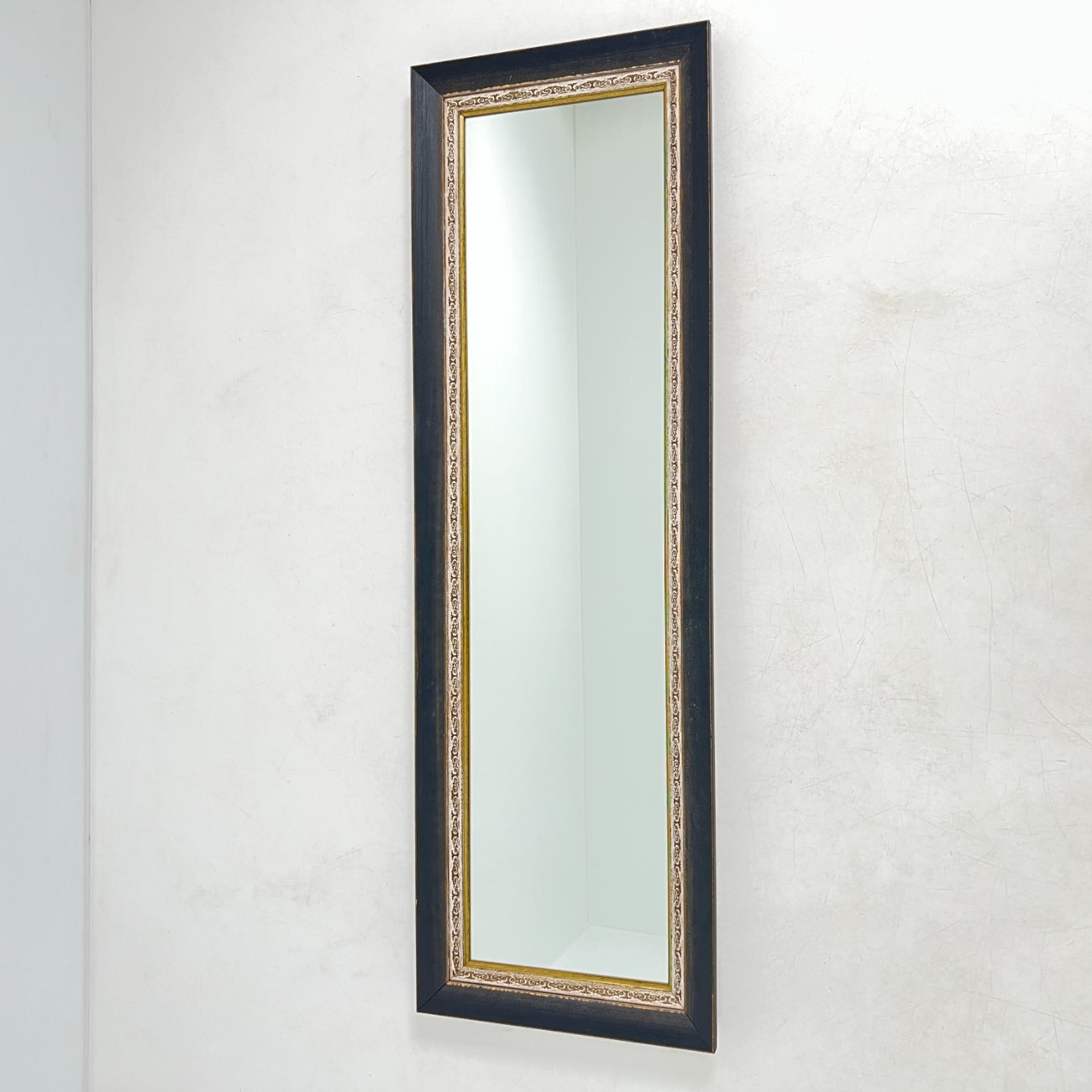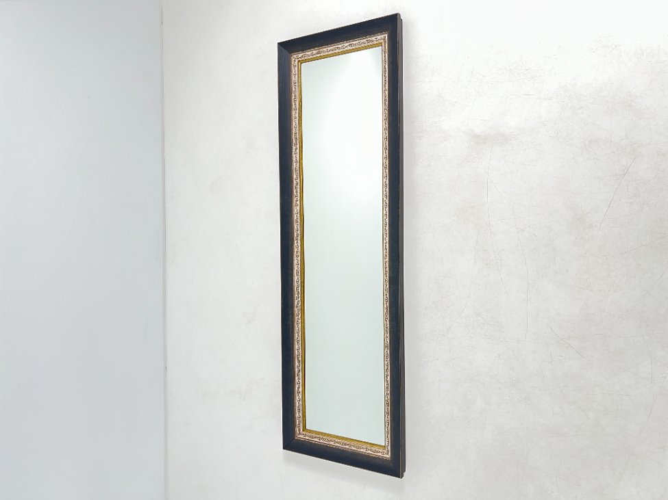 Siauras stačiakampis veidrodis sendintame mediniame rėme 5x46x145 cm