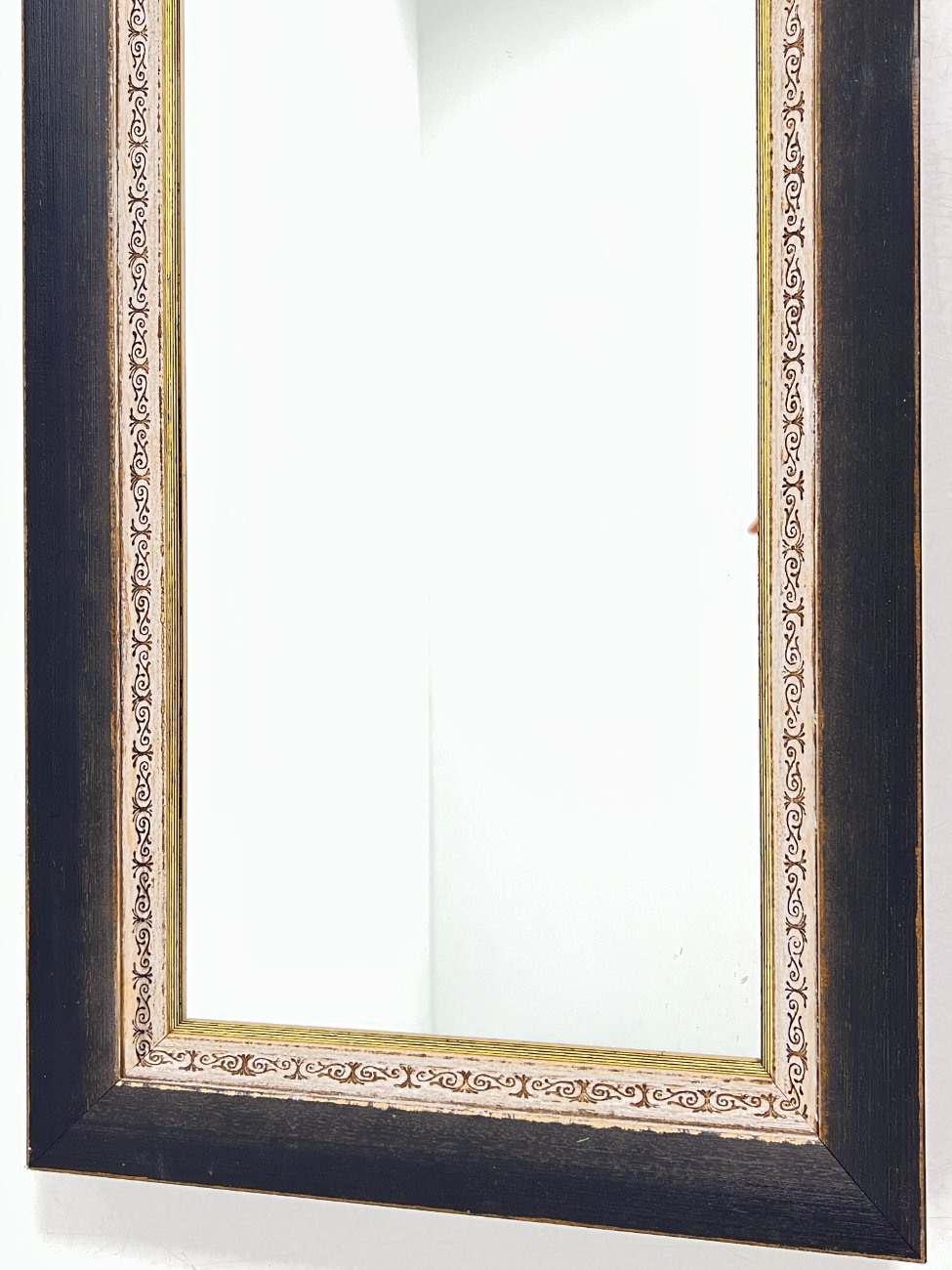 Siauras stačiakampis veidrodis sendintame mediniame rėme.