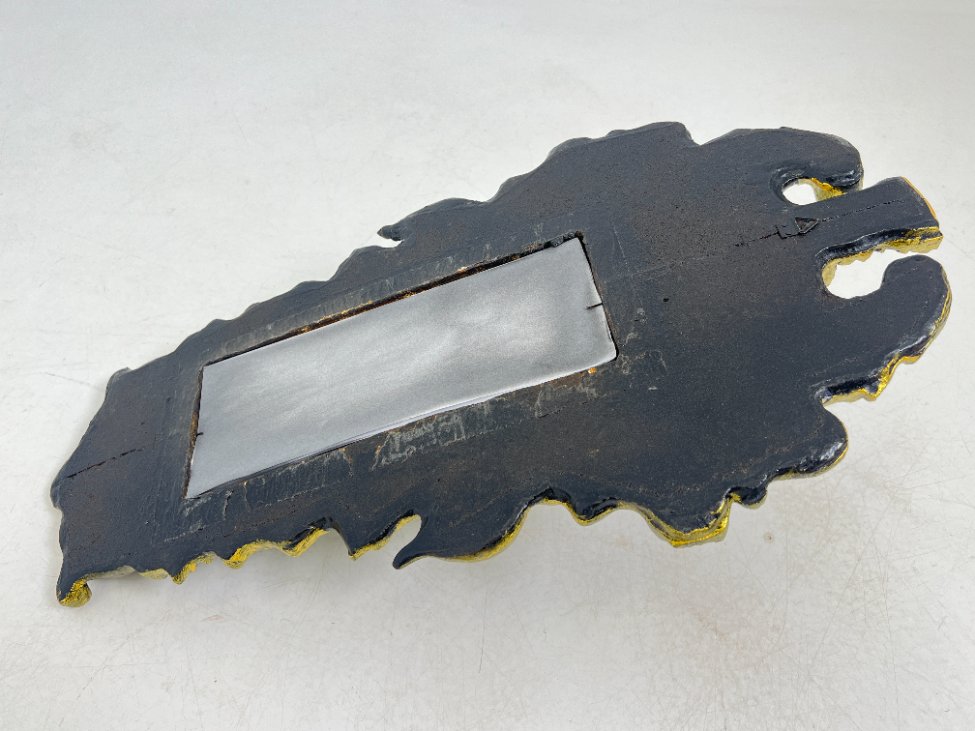 Siauras veidrodis juodame rėme su aukso spalvos ornamentais 5x32x58,5 cm