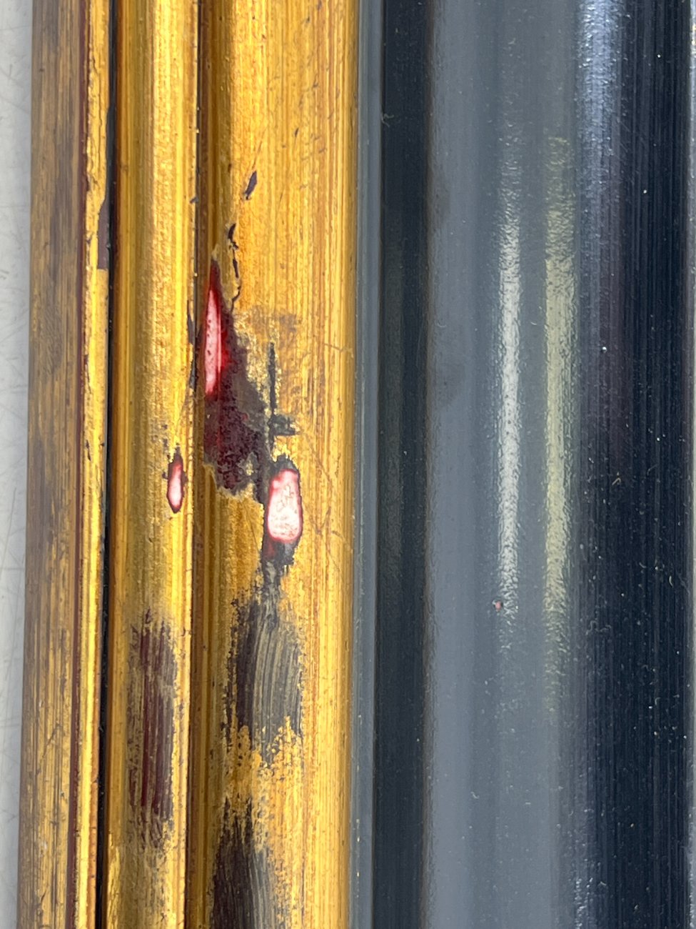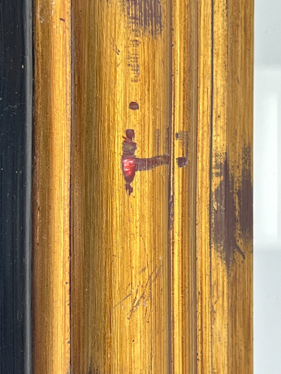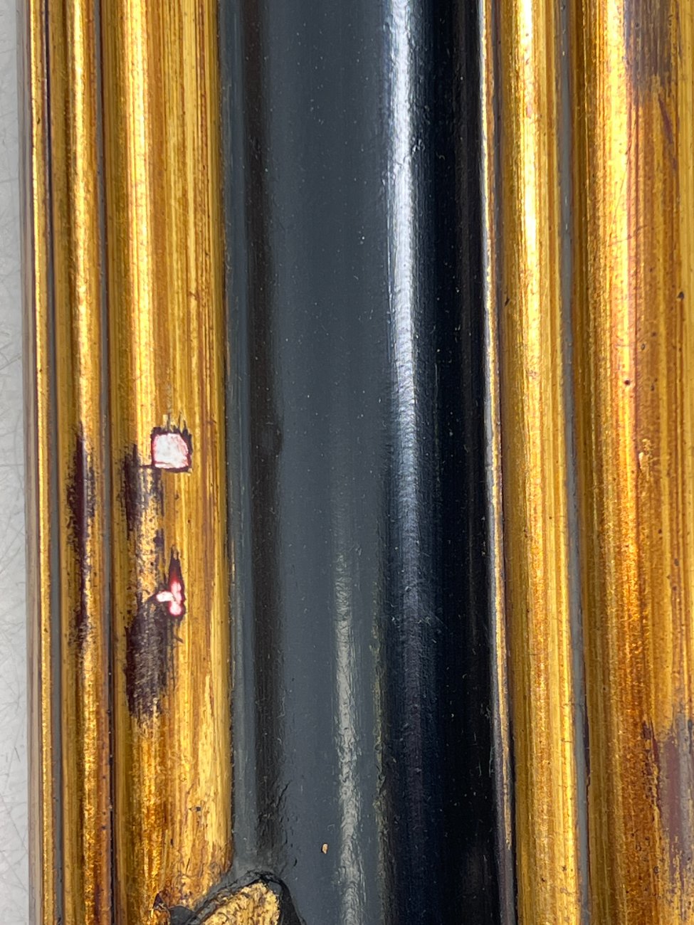 | Papildoma informacija | Ant rėmo yra pabraižymų ir dažų pažeidimų. Apdaužytas viena rėmo kampas. Rėme yra skylės tvirtinimui prie sienos. |