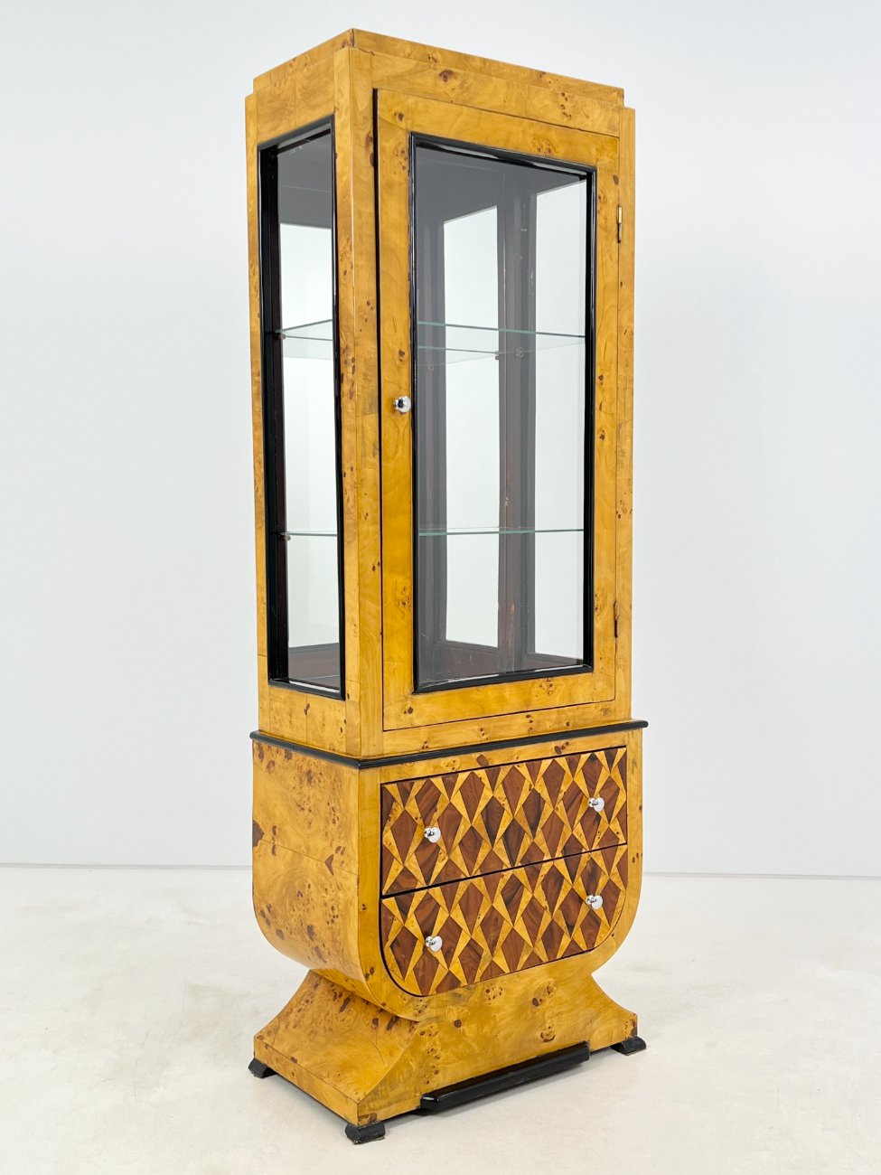 Art Deco stiliaus vitrina su stalčiais 39×69,5×189 cm