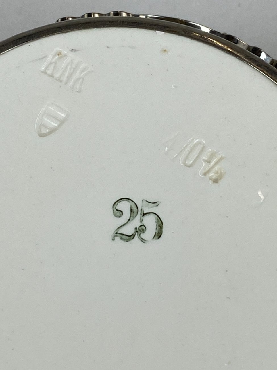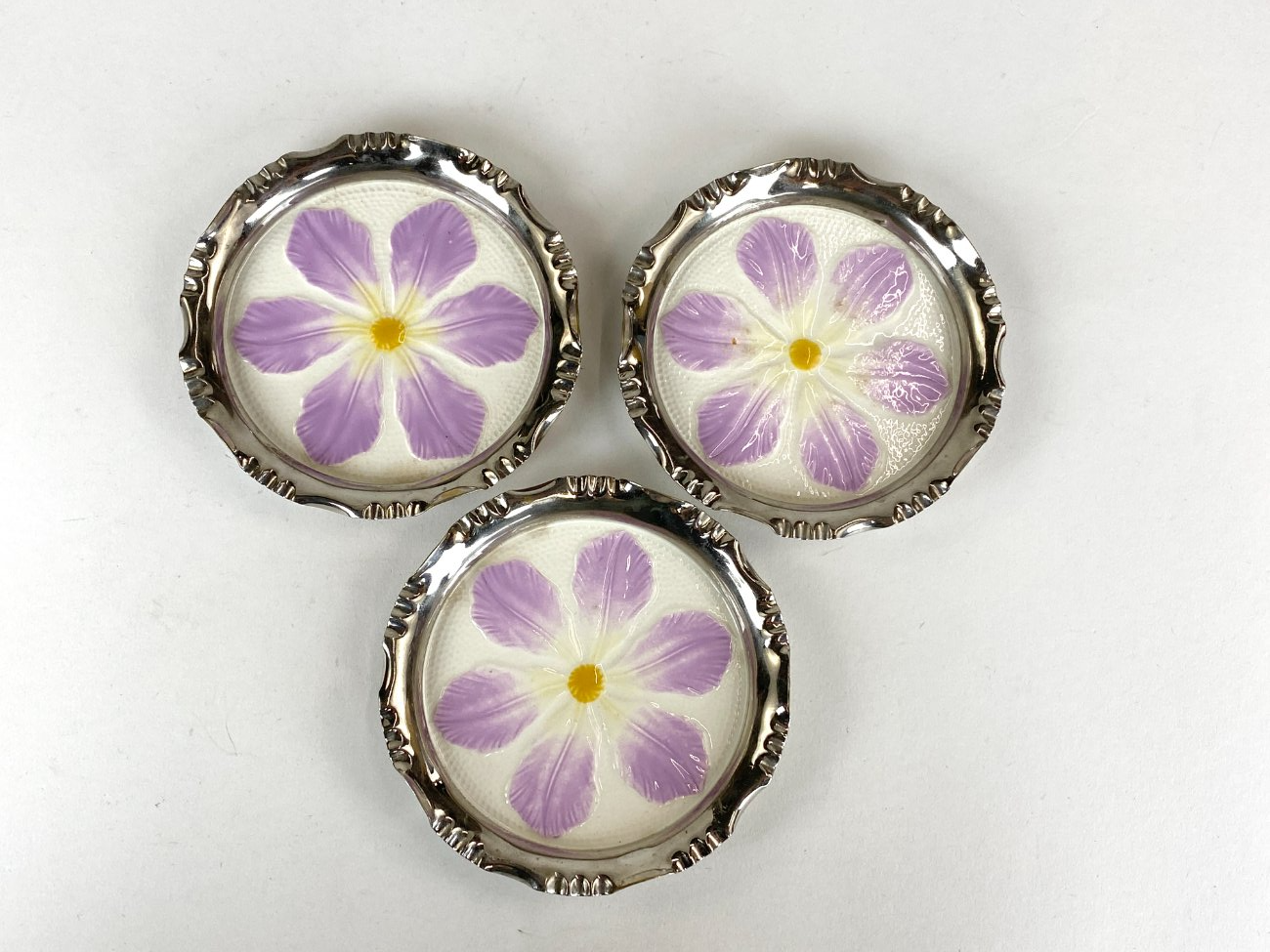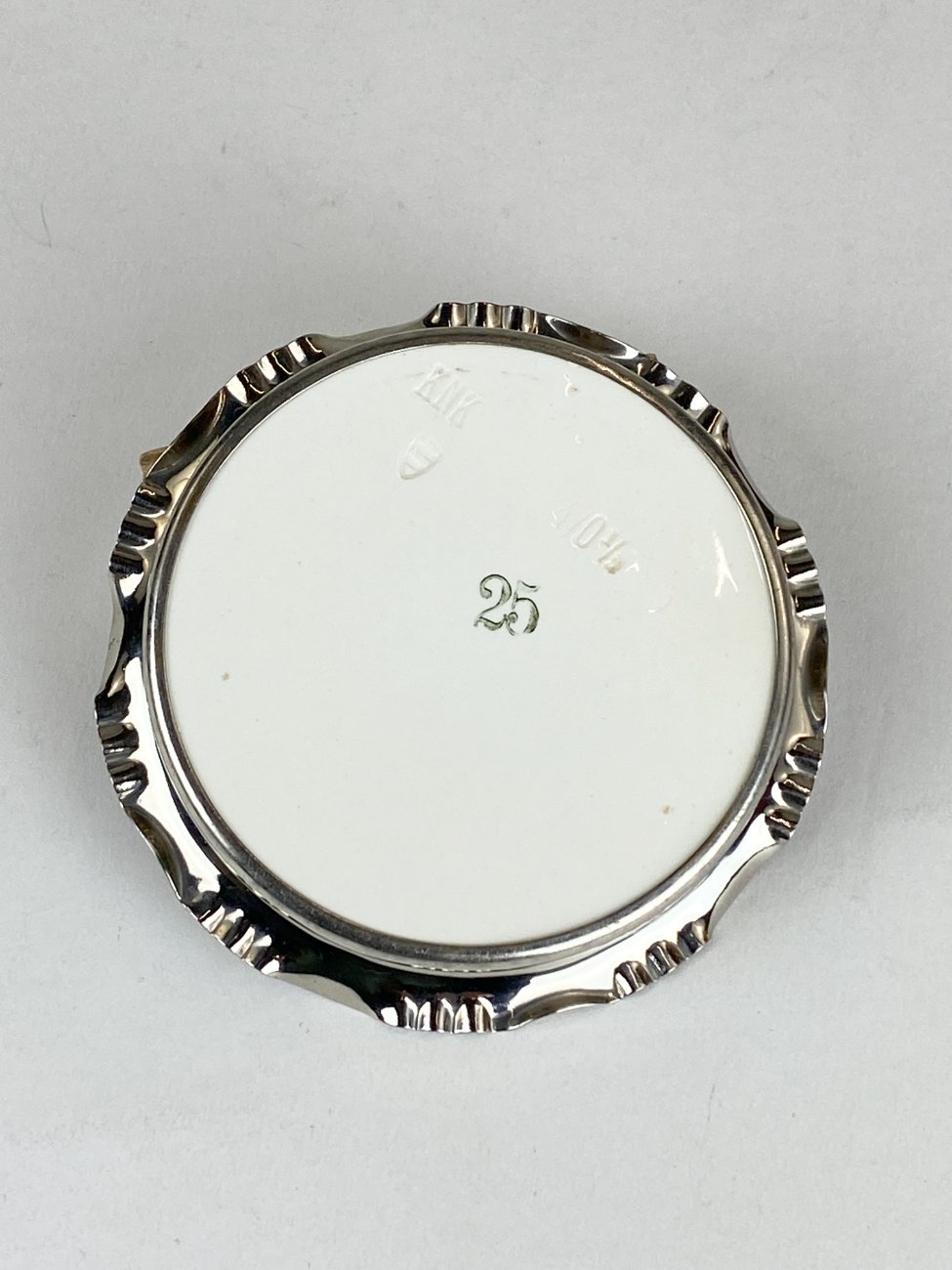 Porcelianinės lėkštutės su metalo apvadais 3 vnt. kompl. 9,5×9,5×1,5 cm