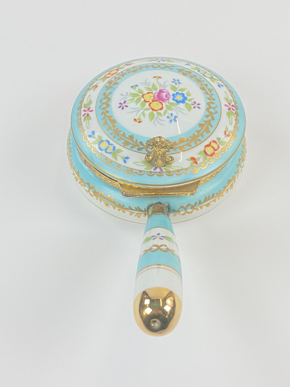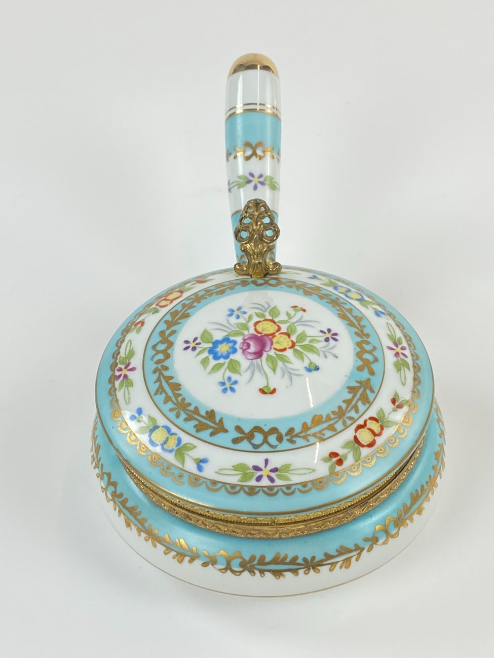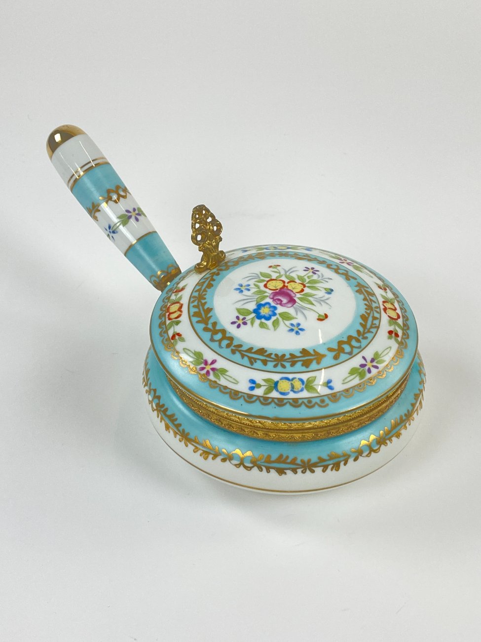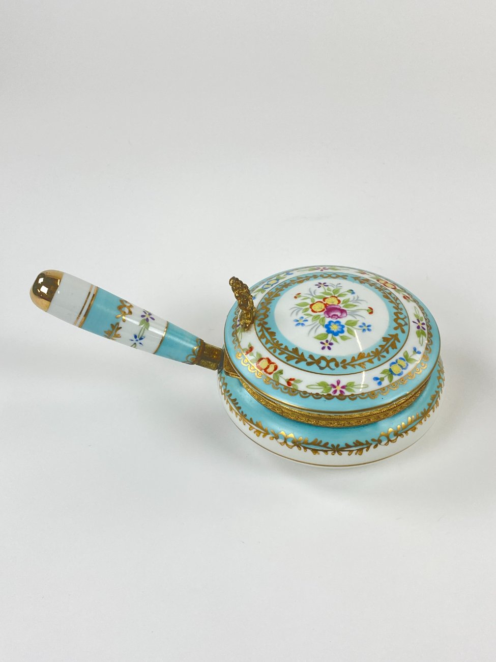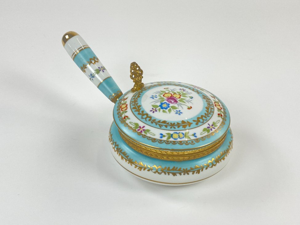 Porcelianinis indas trupiniams su žalvario detalėmis.