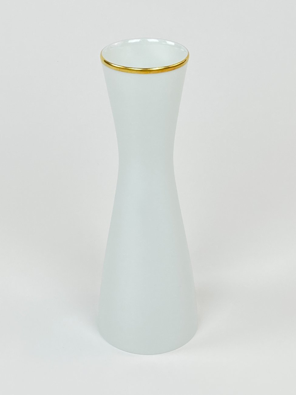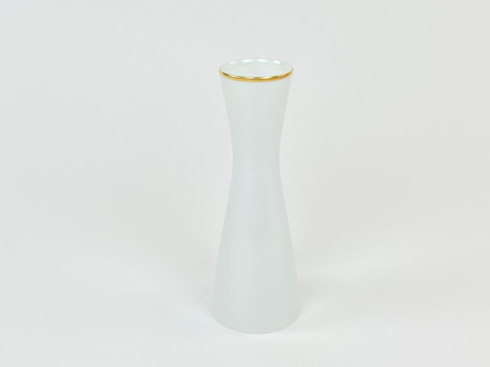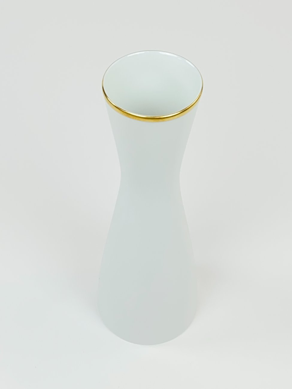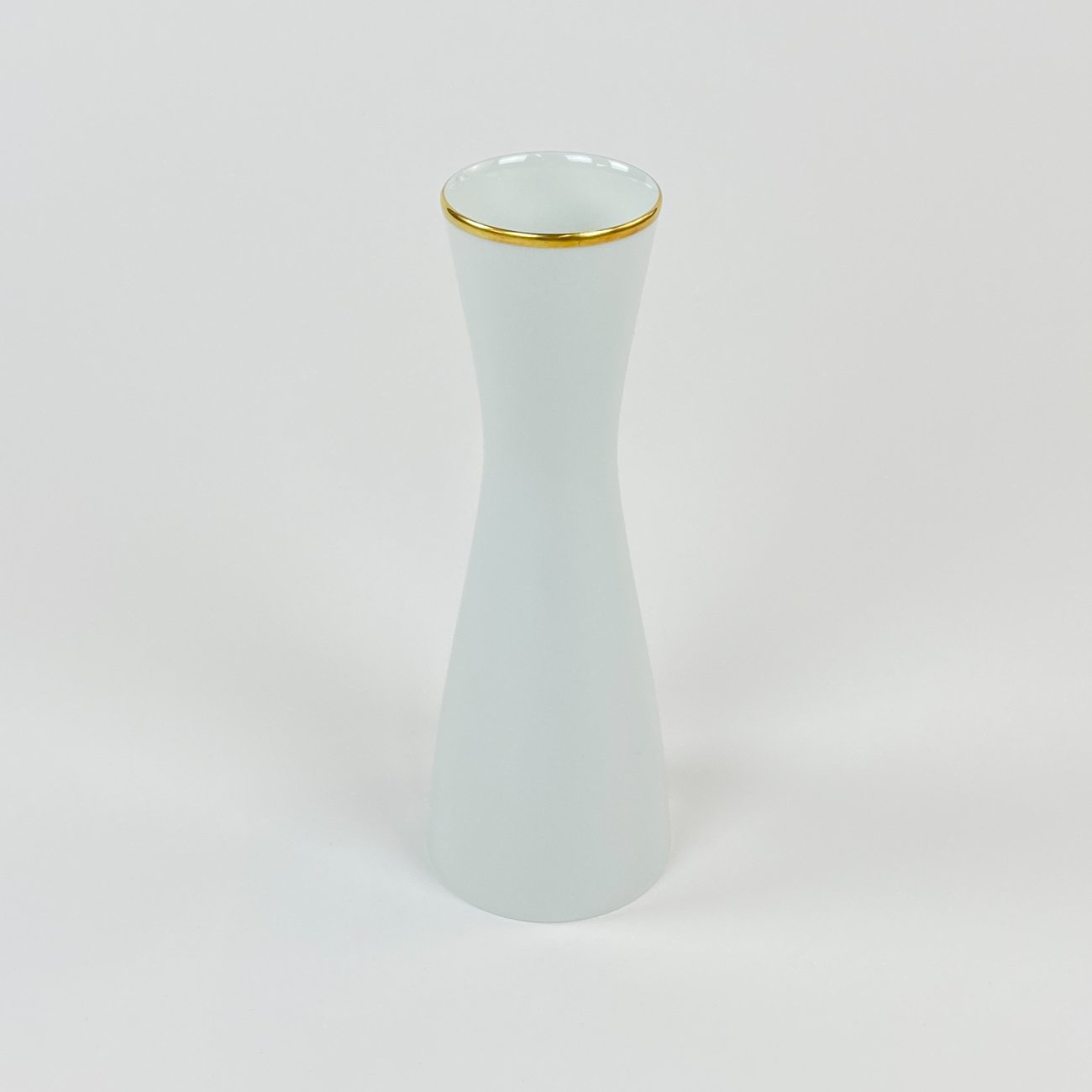 Porcelianinė “Rosenthal” balta vaza su aukso spalvos apvadu 8x8x22,5 cm