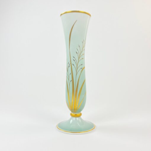 Varpelio formos porcelianinė “Rosenthal” vaza su aukso spalvos smilgų raštais.