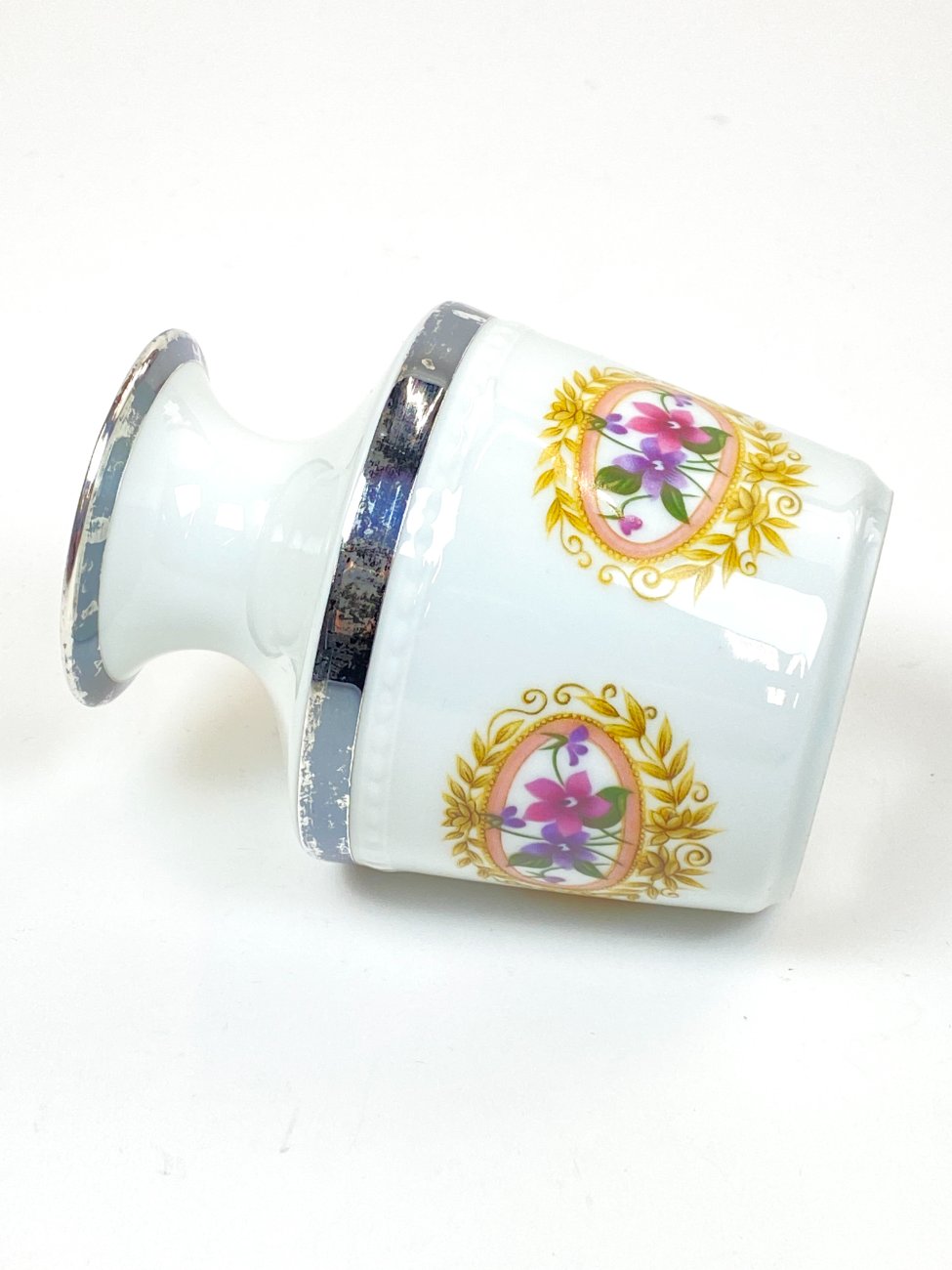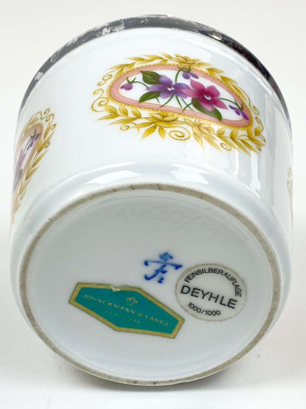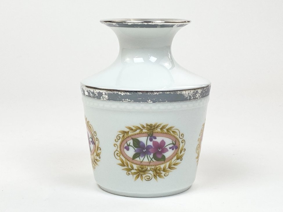 Porcelianinė Fürstenberg Porcelain vazelė su sidabruoto metalo apvadais.