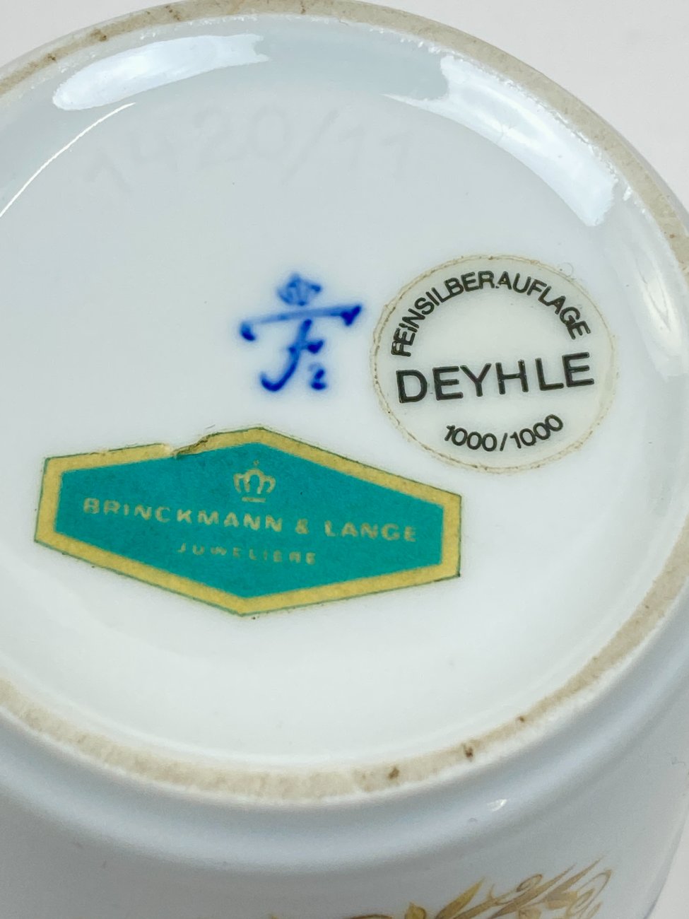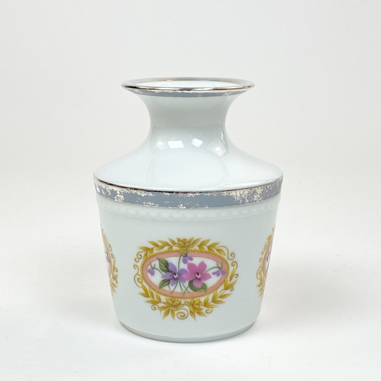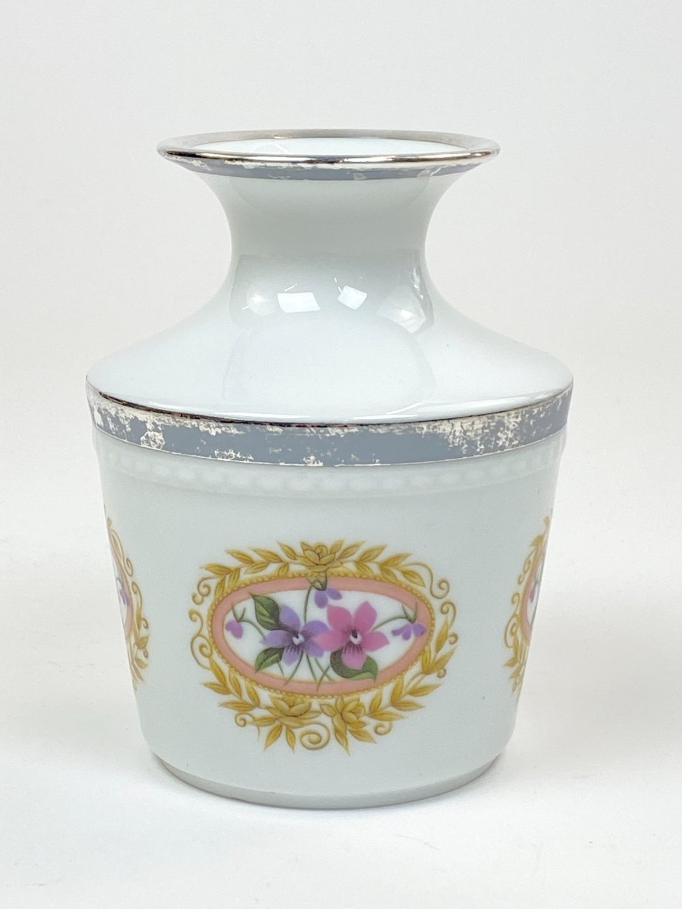 Porcelianinė Fürstenberg Porcelain vazelė su sidabruoto metalo apvadais.