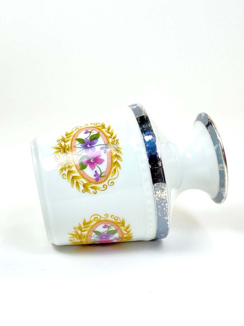 Porcelianinė Fürstenberg Porcelain vazelė su sidabruoto metalo apvadais 9x9x11,5 cm