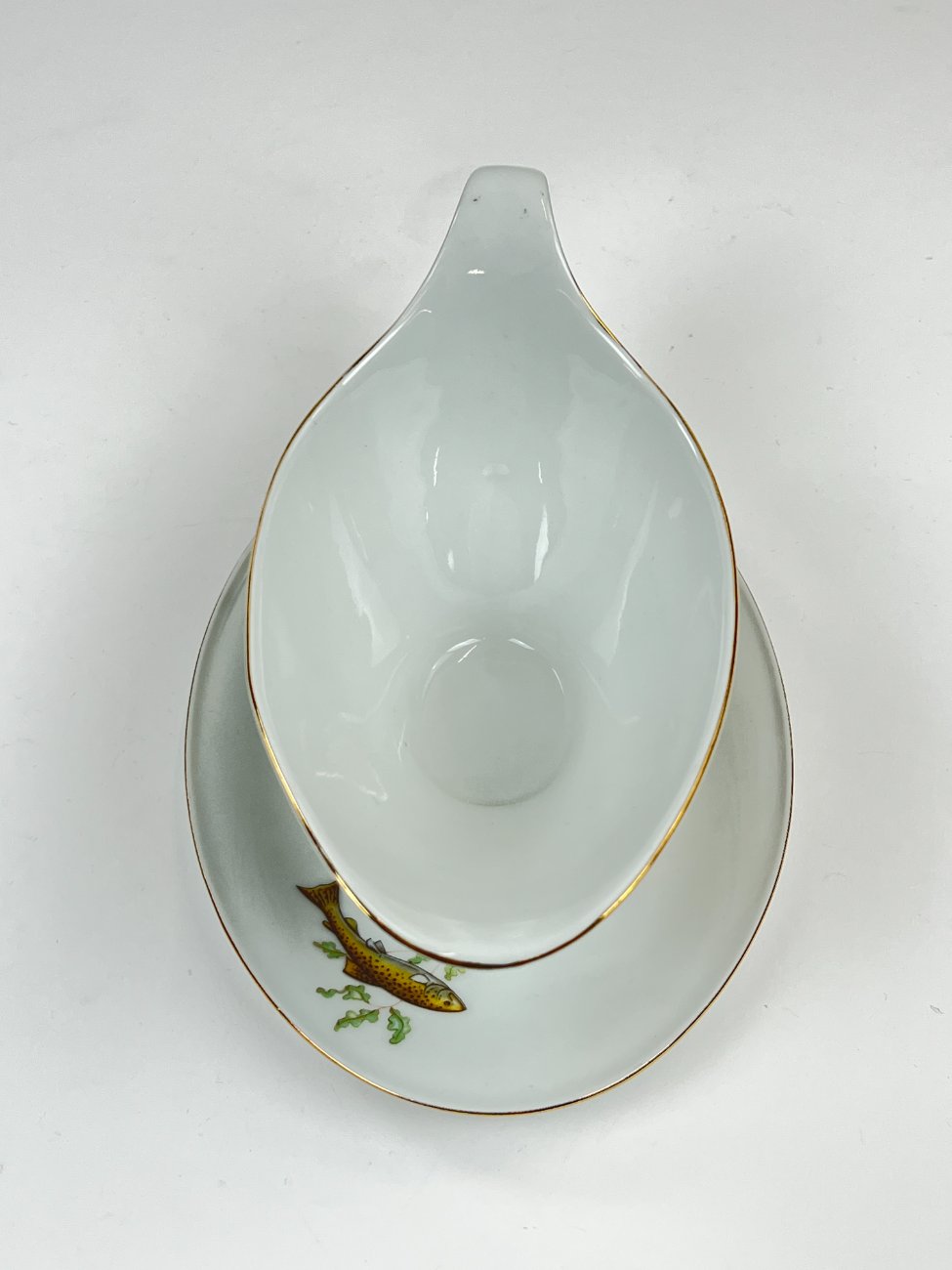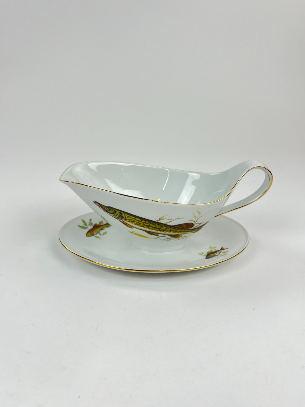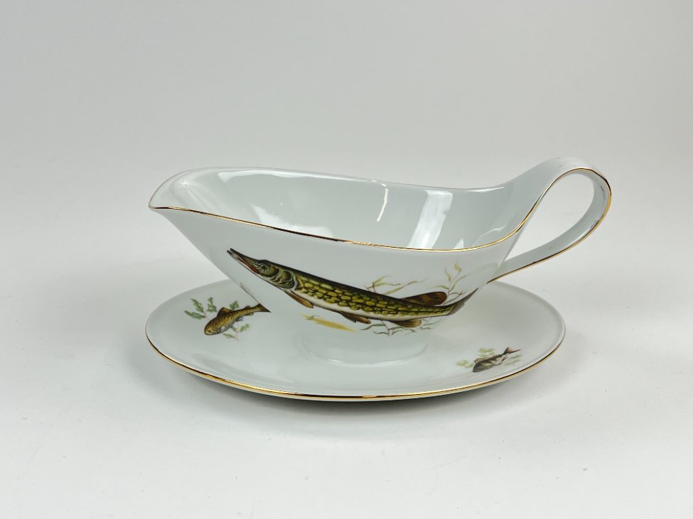 Porcelianinė Mitterteich Bavaria padažinė su žuvų atvaizdais.