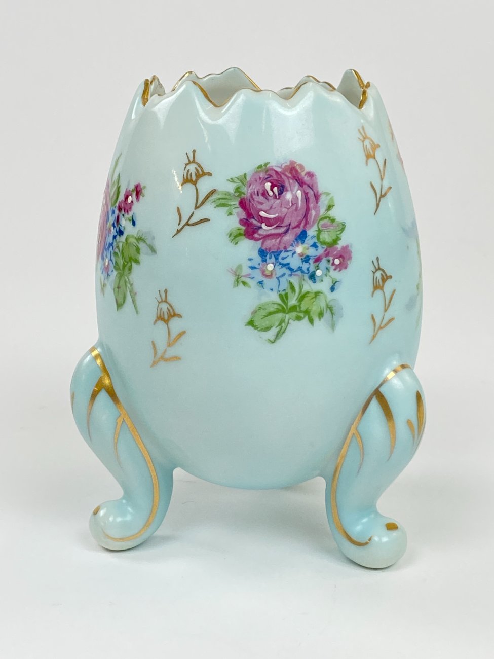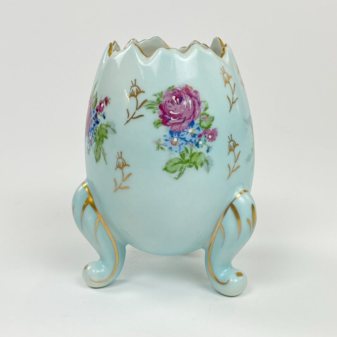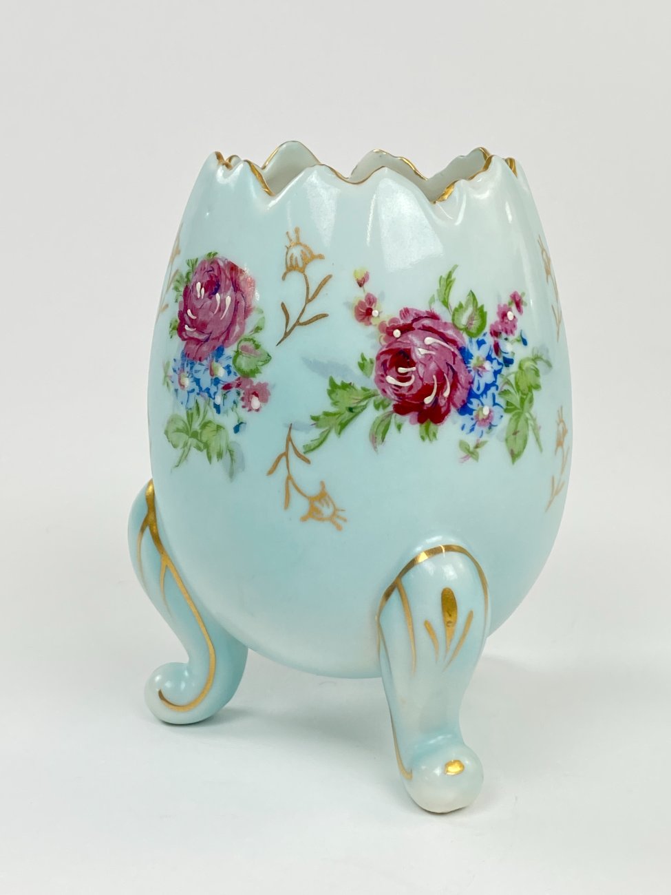 Porcelianinė Napcoware nuskelto kiaušinio formos vaza, dekoruota gėlių piešiniais.