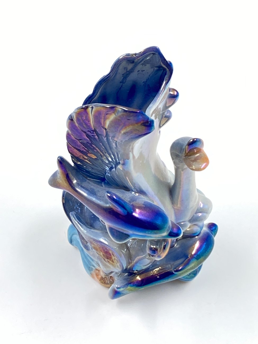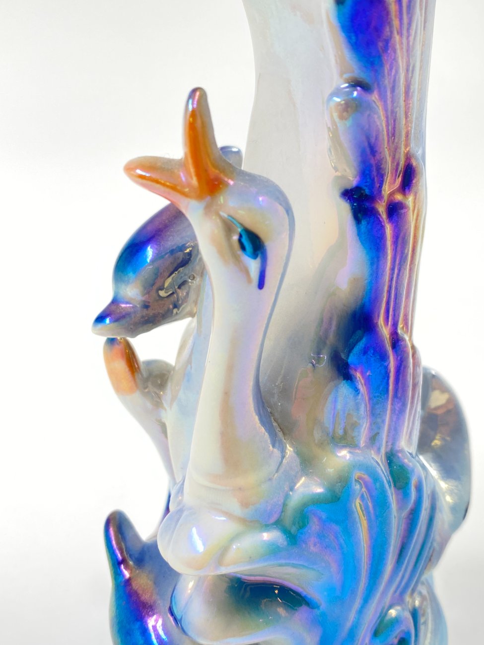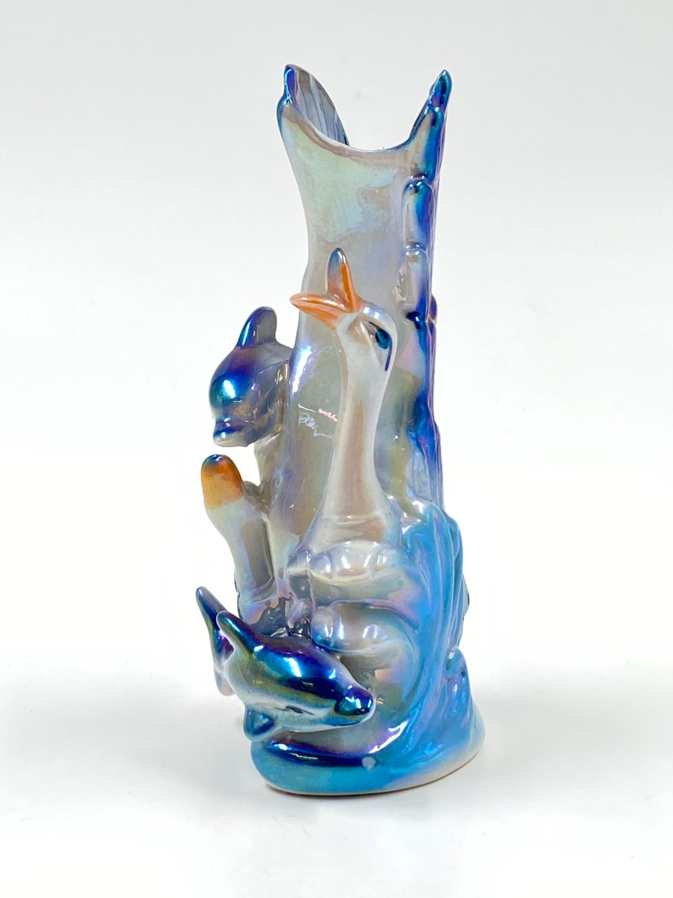 Porcelianinė vazelė su delfinais ir gulbėmis 7x9x16 cm