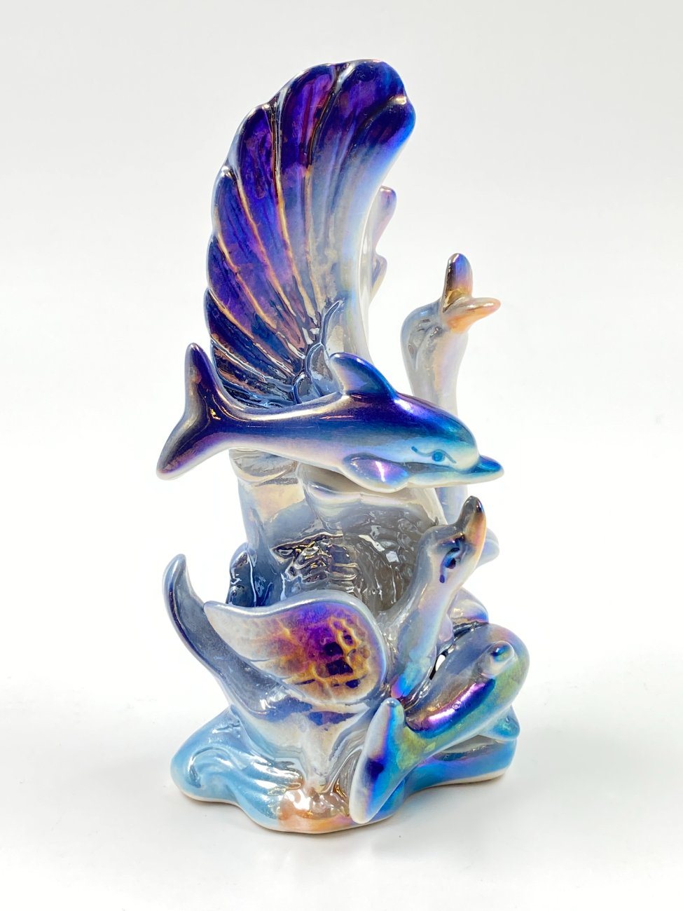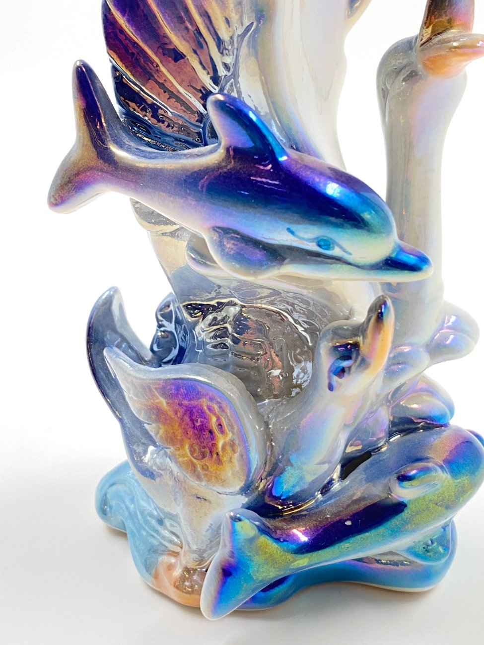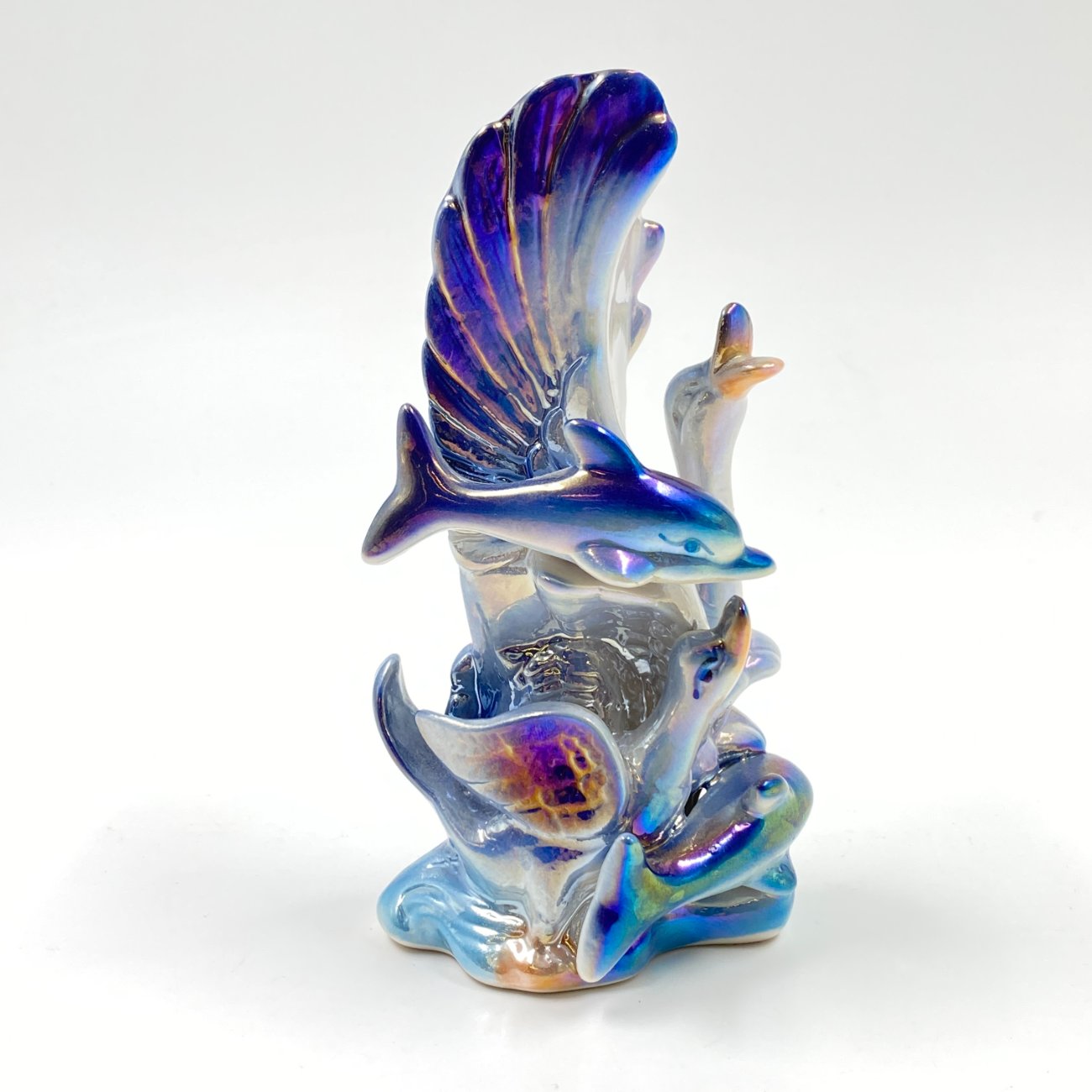Porcelianinė vazelė su delfinais ir gulbėmis 7x9x16 cm