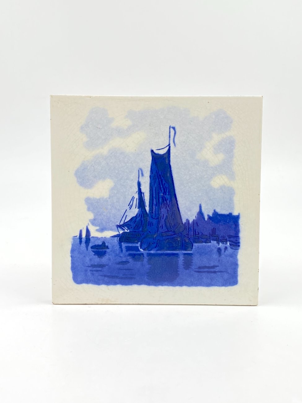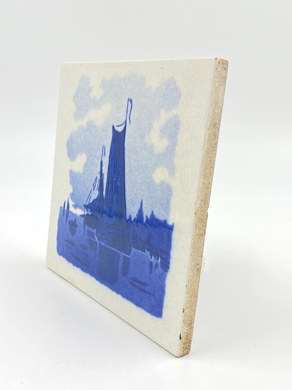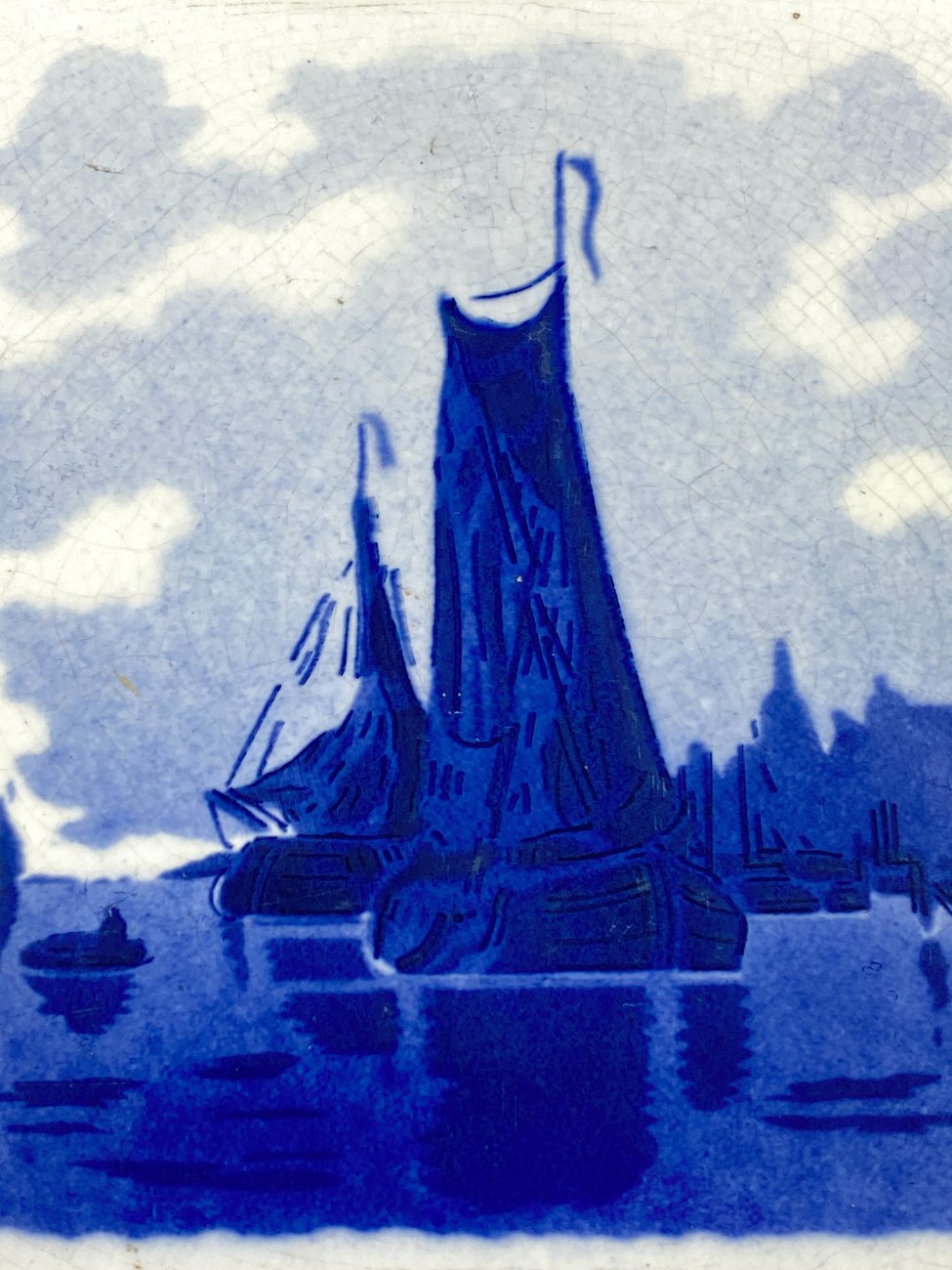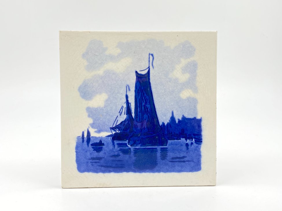 Keramikinė delftų stiliaus plytelė su laivų motyvais.