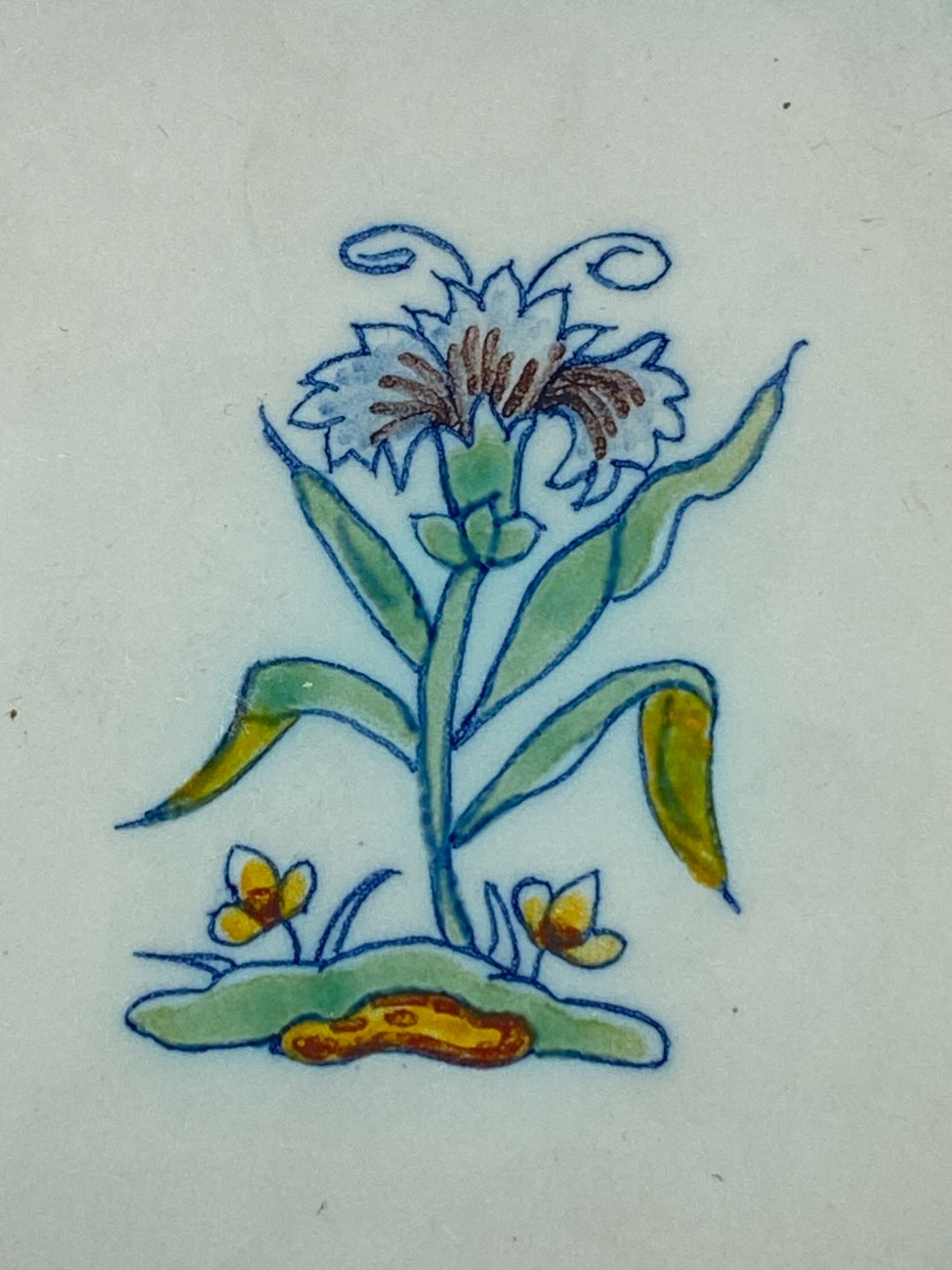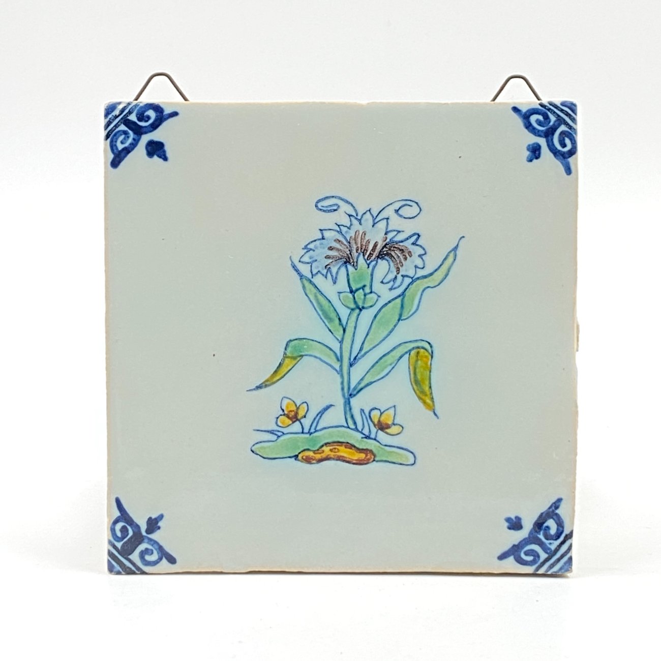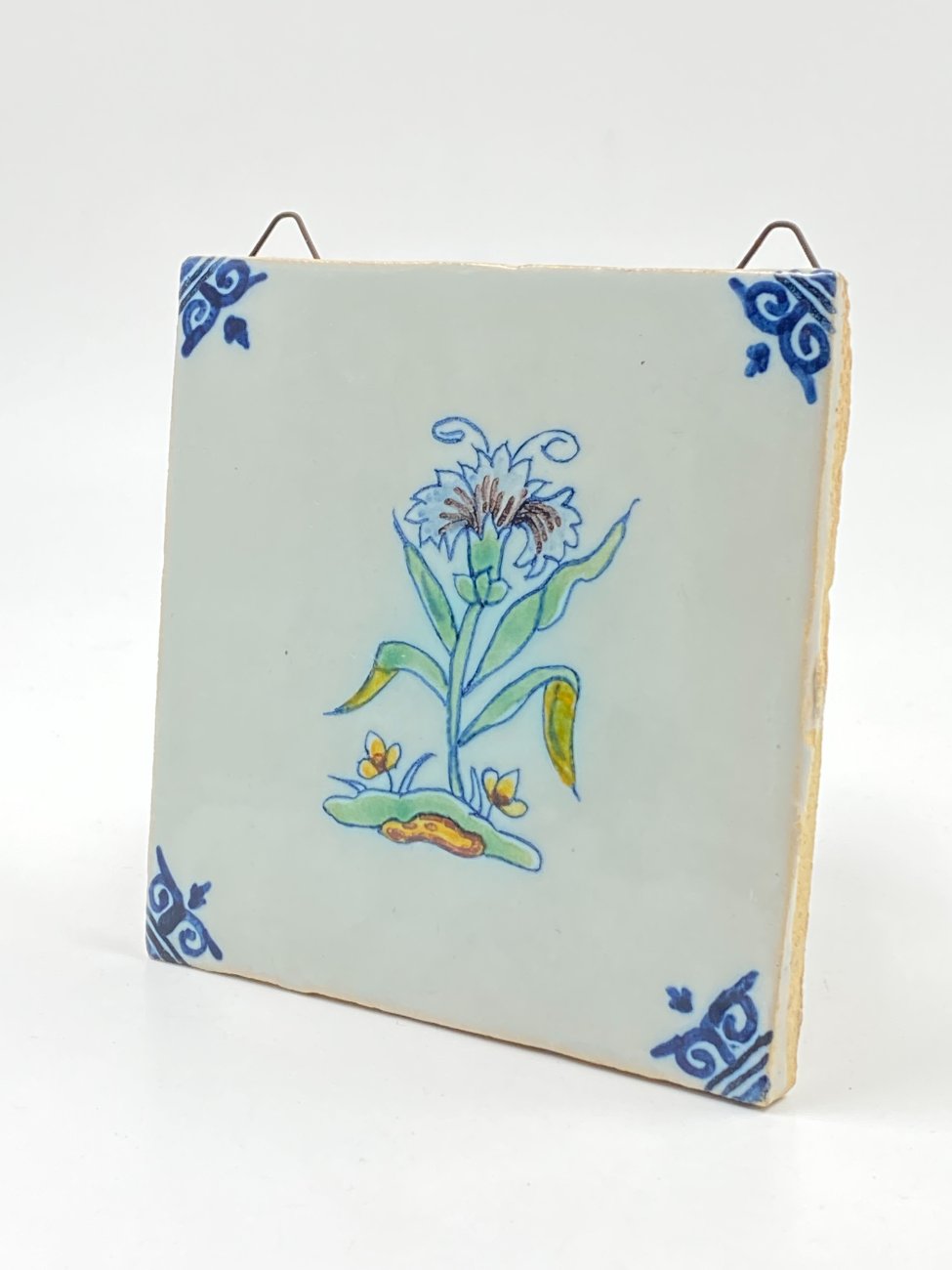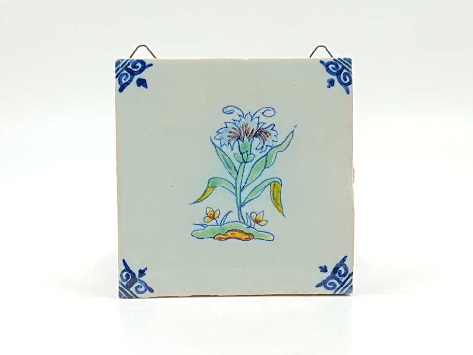 Keramikinė “Royal Tichelaar Makkum” plytelė su rankomis tapytomis gėlėmis.