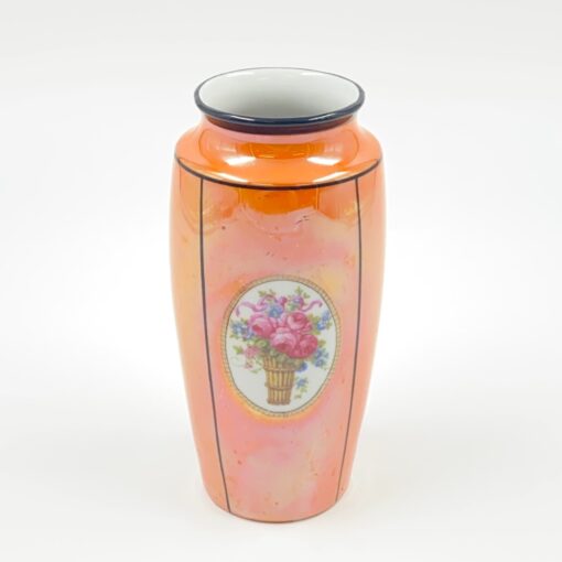 Keramikinė, oranžinės spalvos vaza su gėlių paveikslu