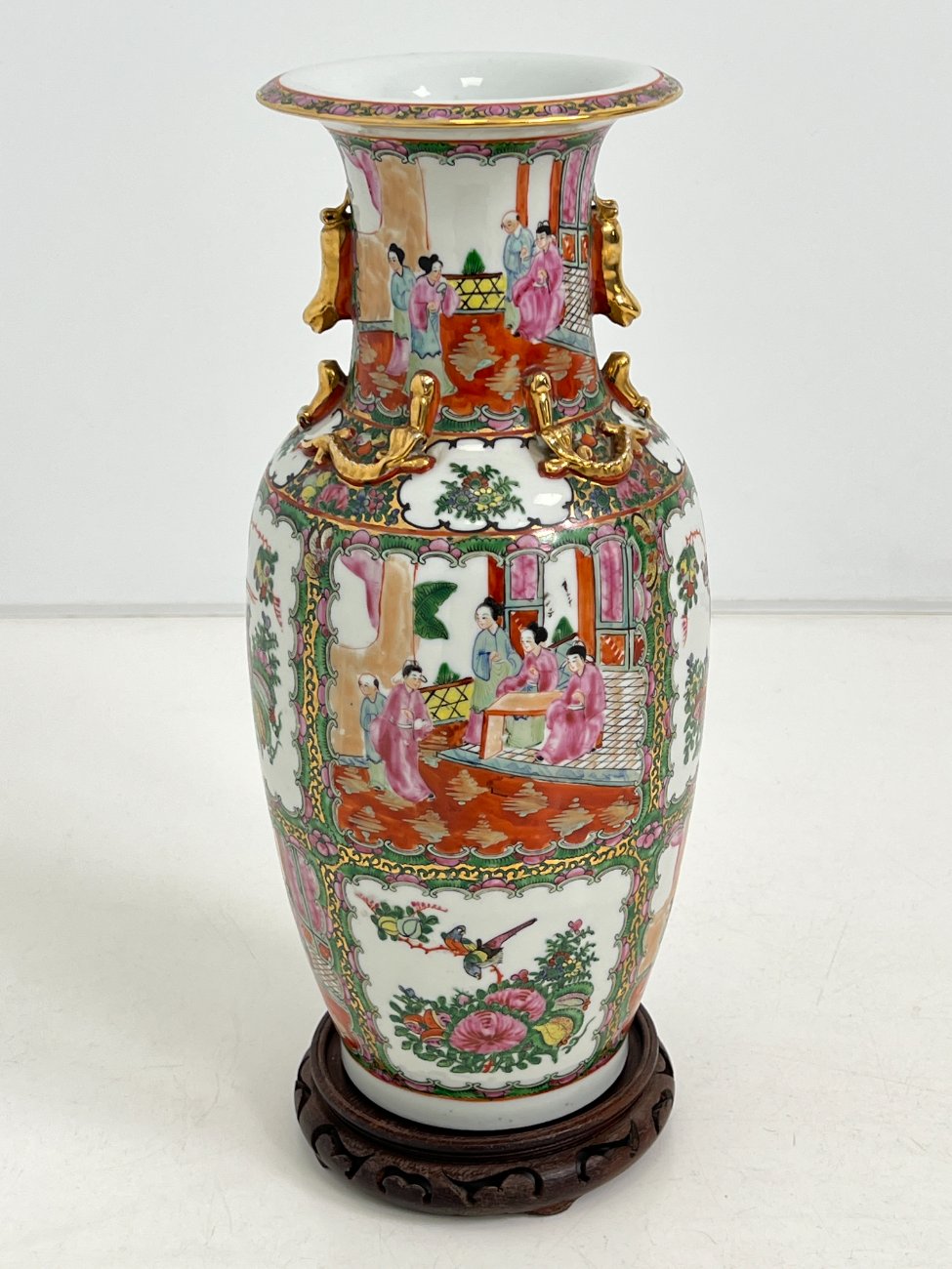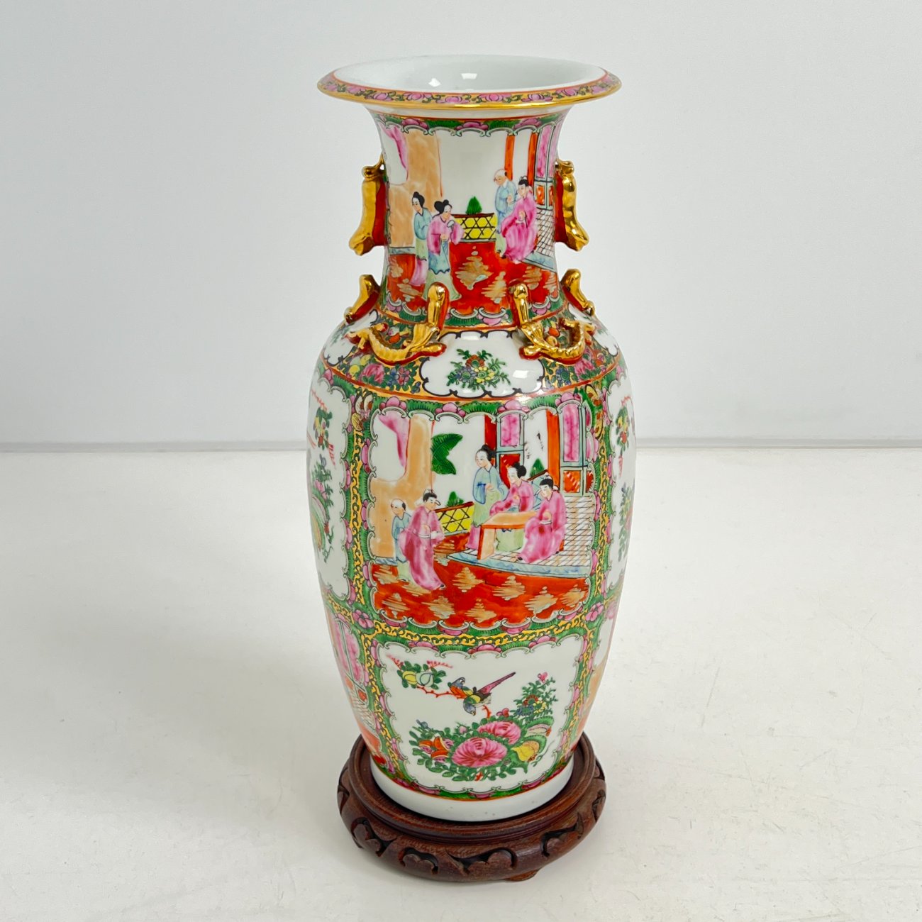 Rytietiška keramikinė vaza su raudonmedžio padėkliuku 20x20x50 cm