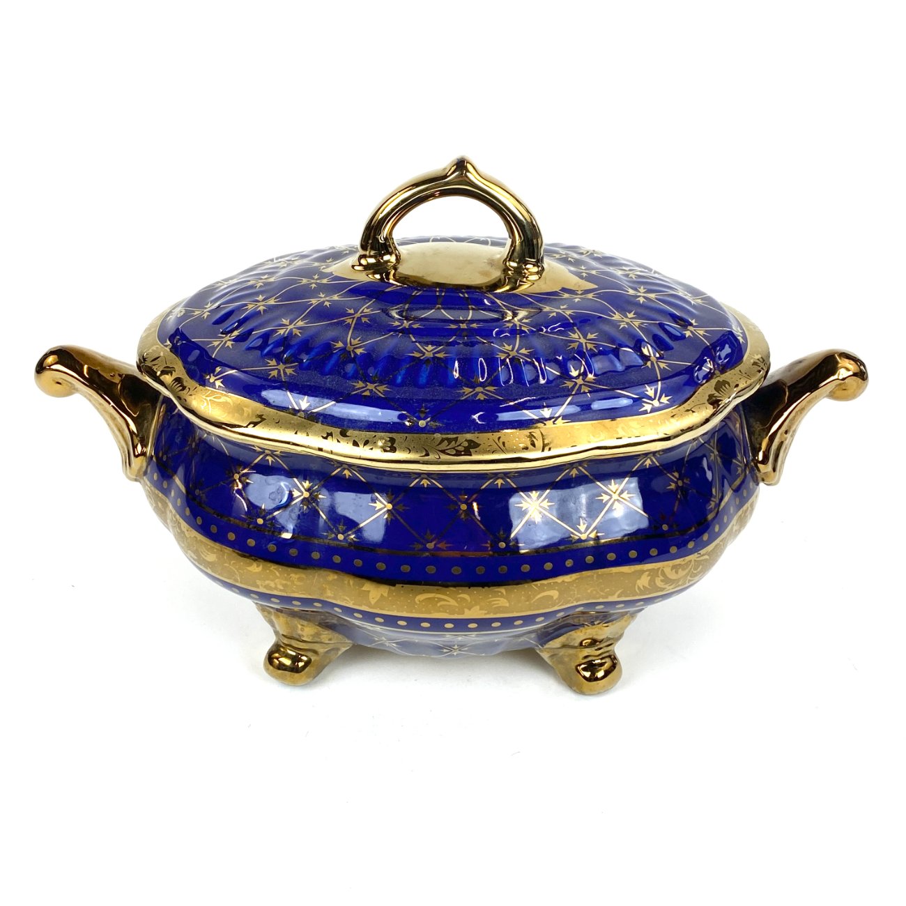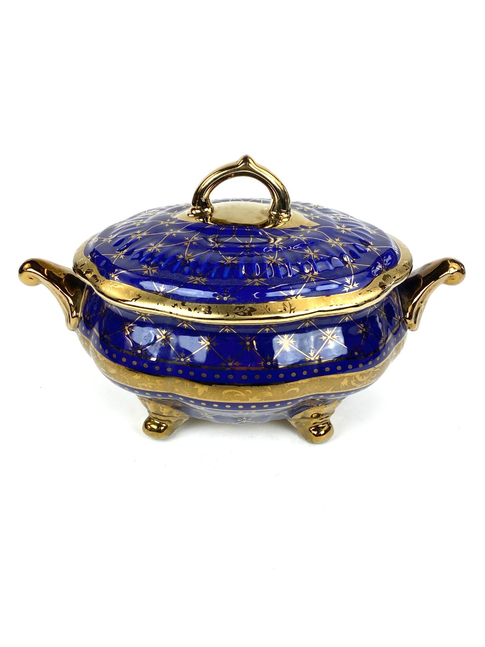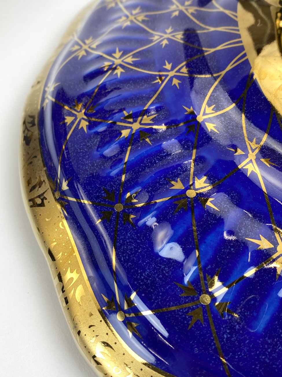 Keramikinis “Wurko” mėlyno ir aukso atspalvių indas su dangčiu.