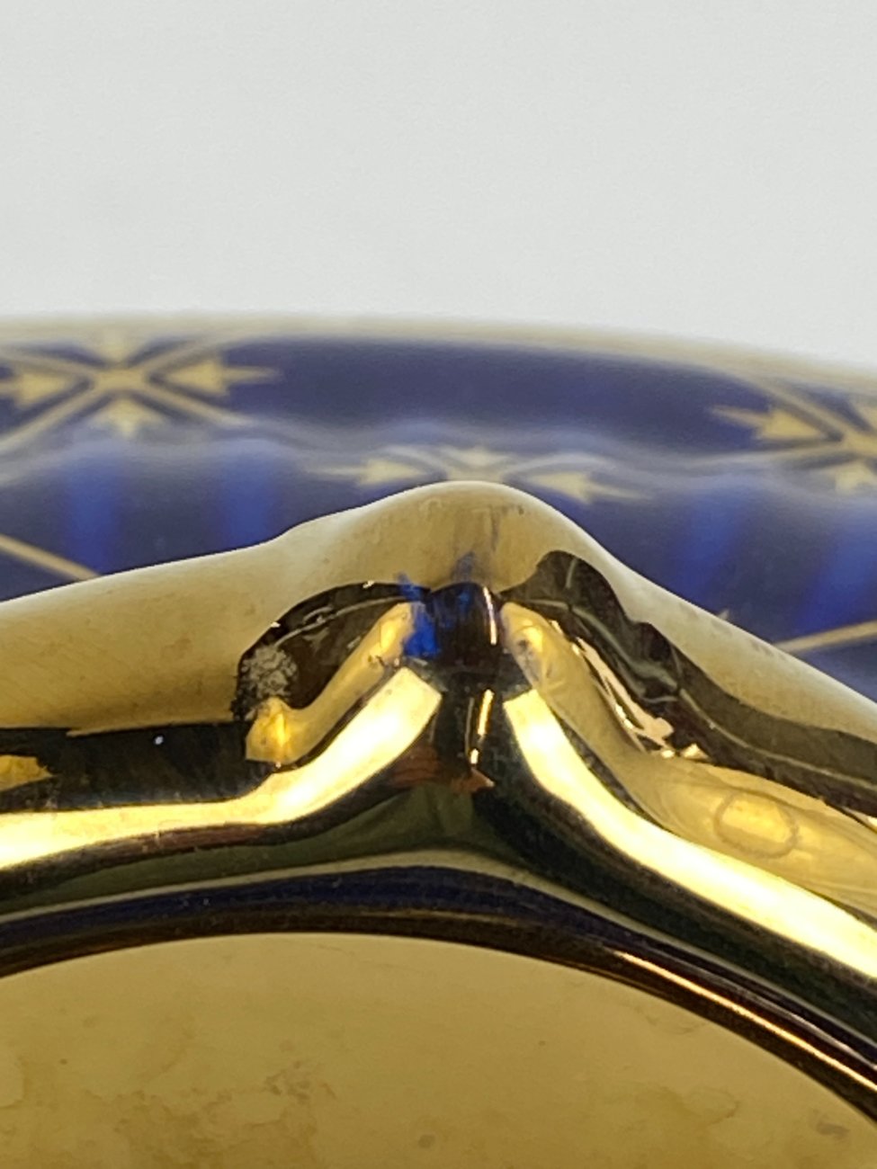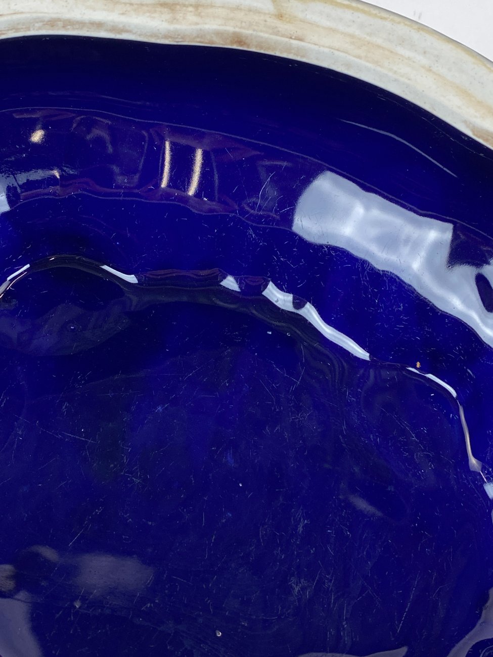 | Papildoma informacija | Ant dangčio yra gamybinio broko - netolygiai pasidengusi mėlynos spalvos glazūra. |