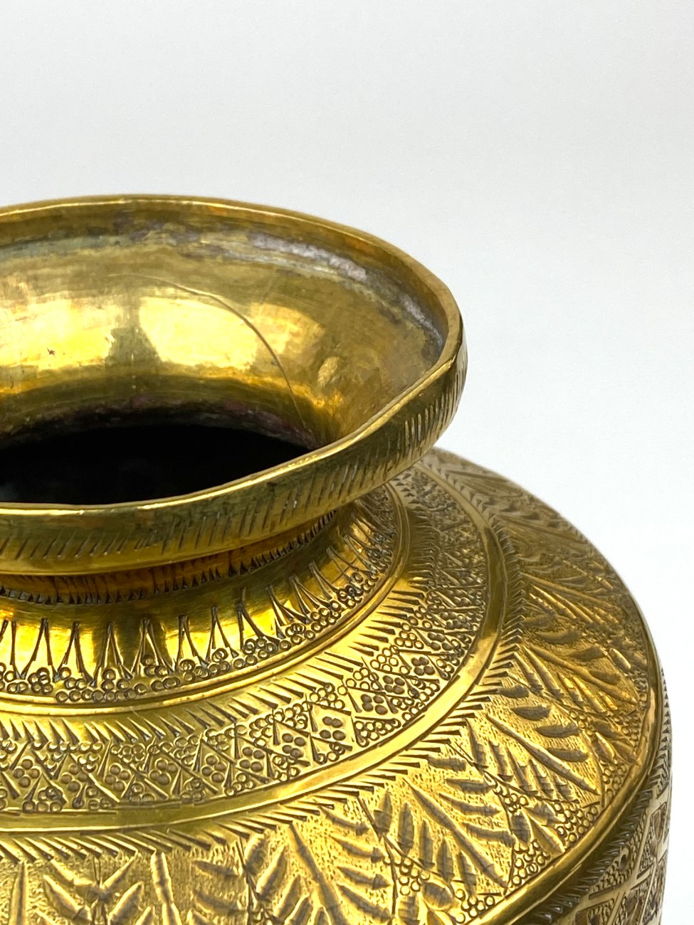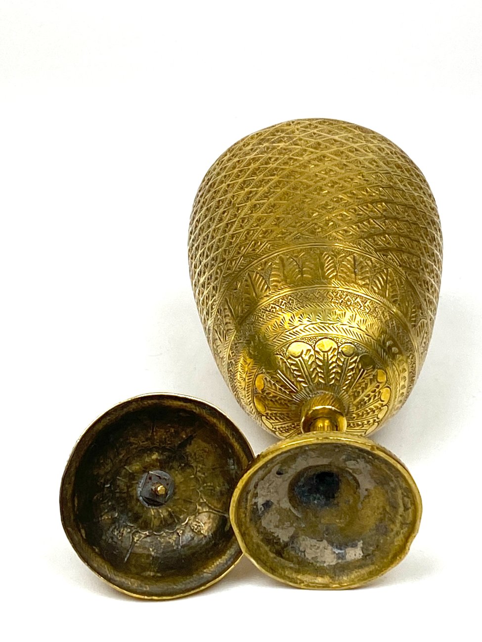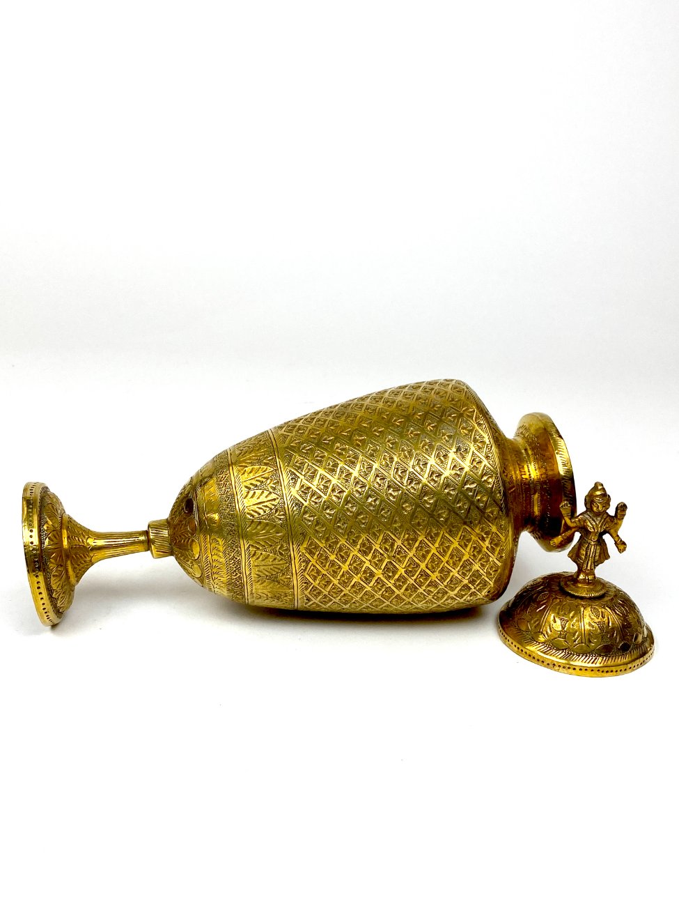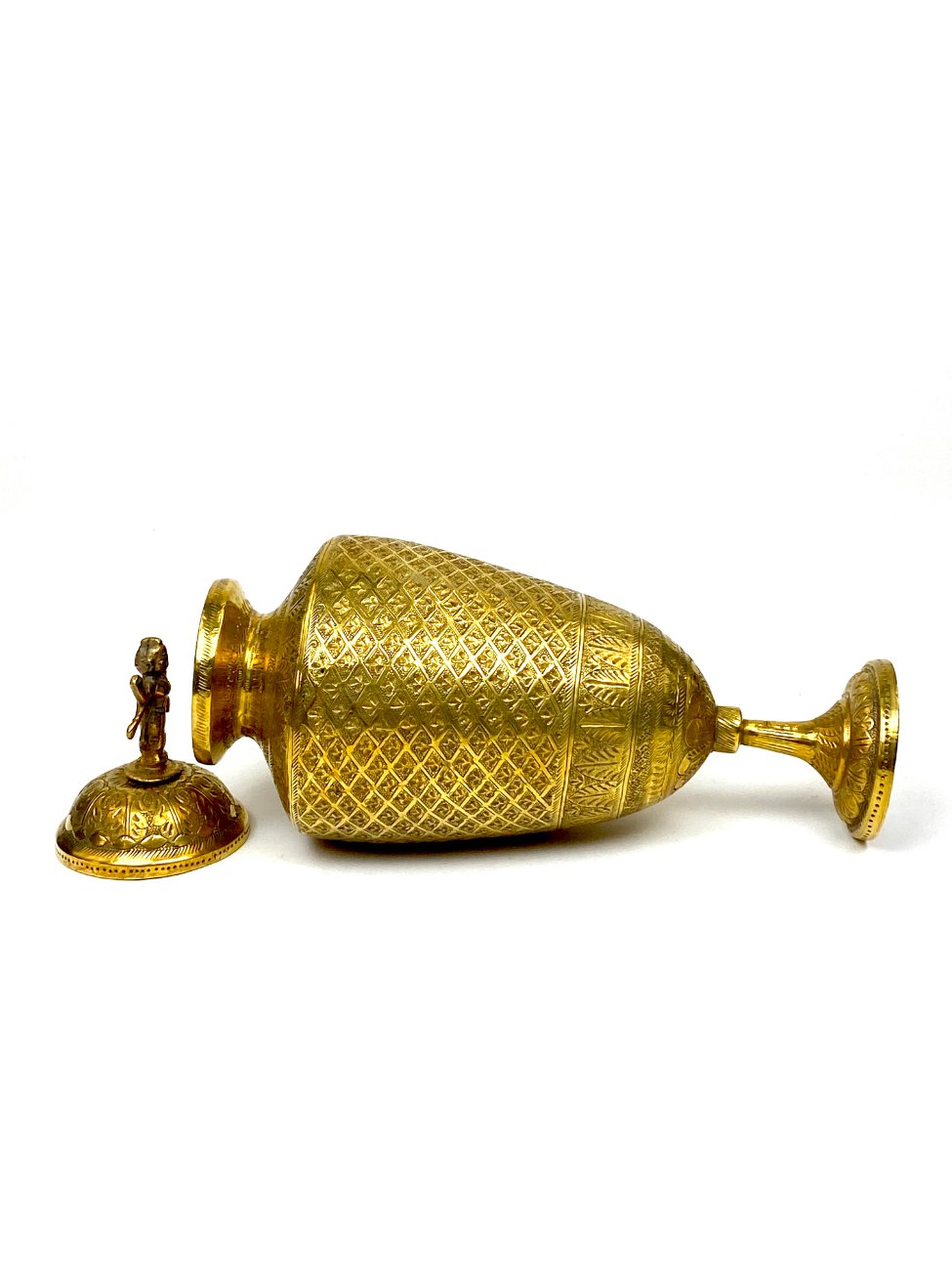 Indiškas žalvarinis indas su dangčiu-urna su Višnus figūra.