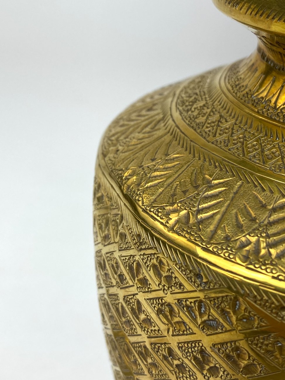 Indiškas žalvarinis indas su dangčiu-urna su Višnus figūra 10,5×10,5×31 cm