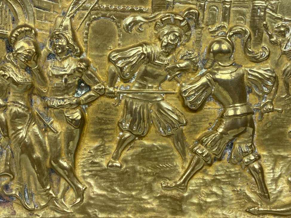 Pakabinamas žalvarinis bareljefas su kovos scena “Dispute de reîtres” 1,5×22,5×18 cm